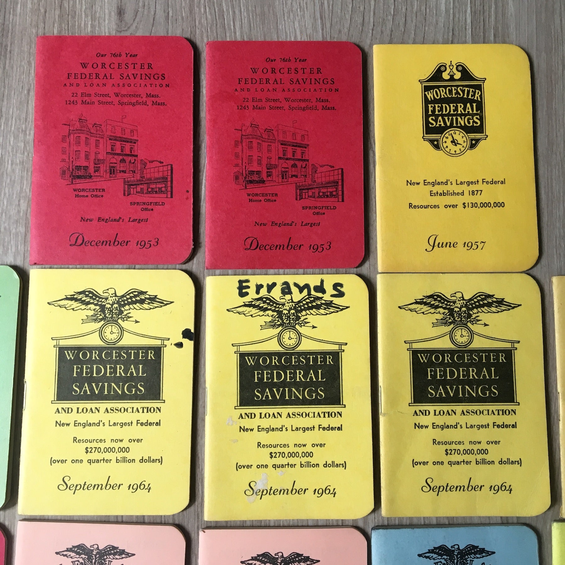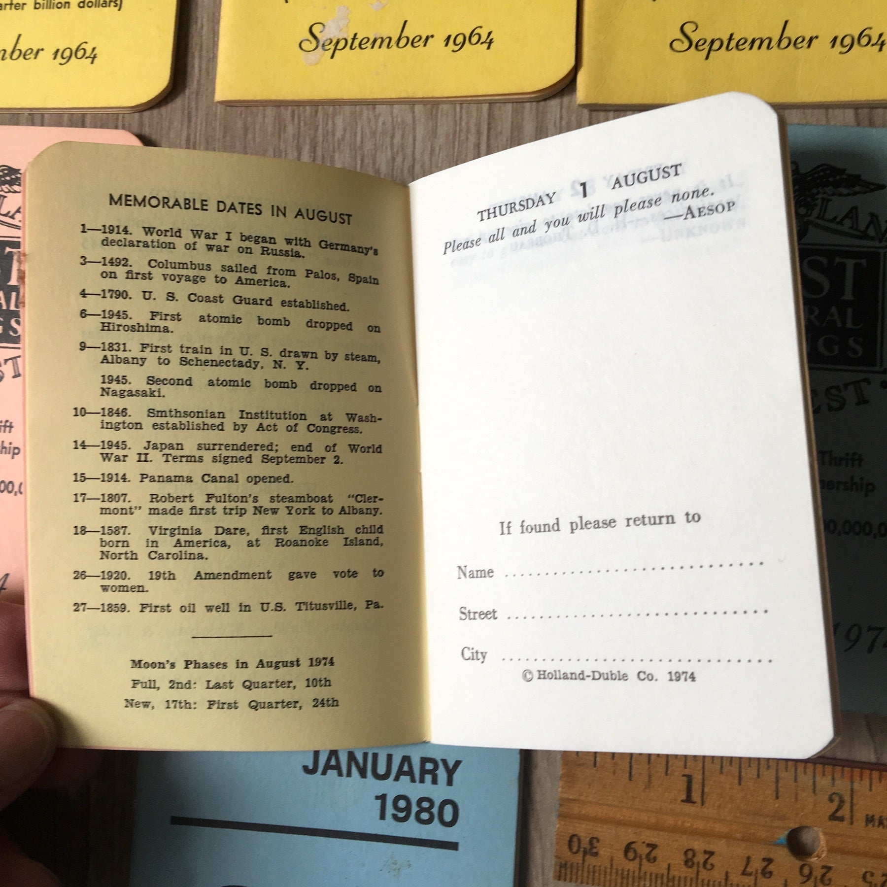 Pocket size savings bank calendar books - 14 vintage 1950s-1980s journals