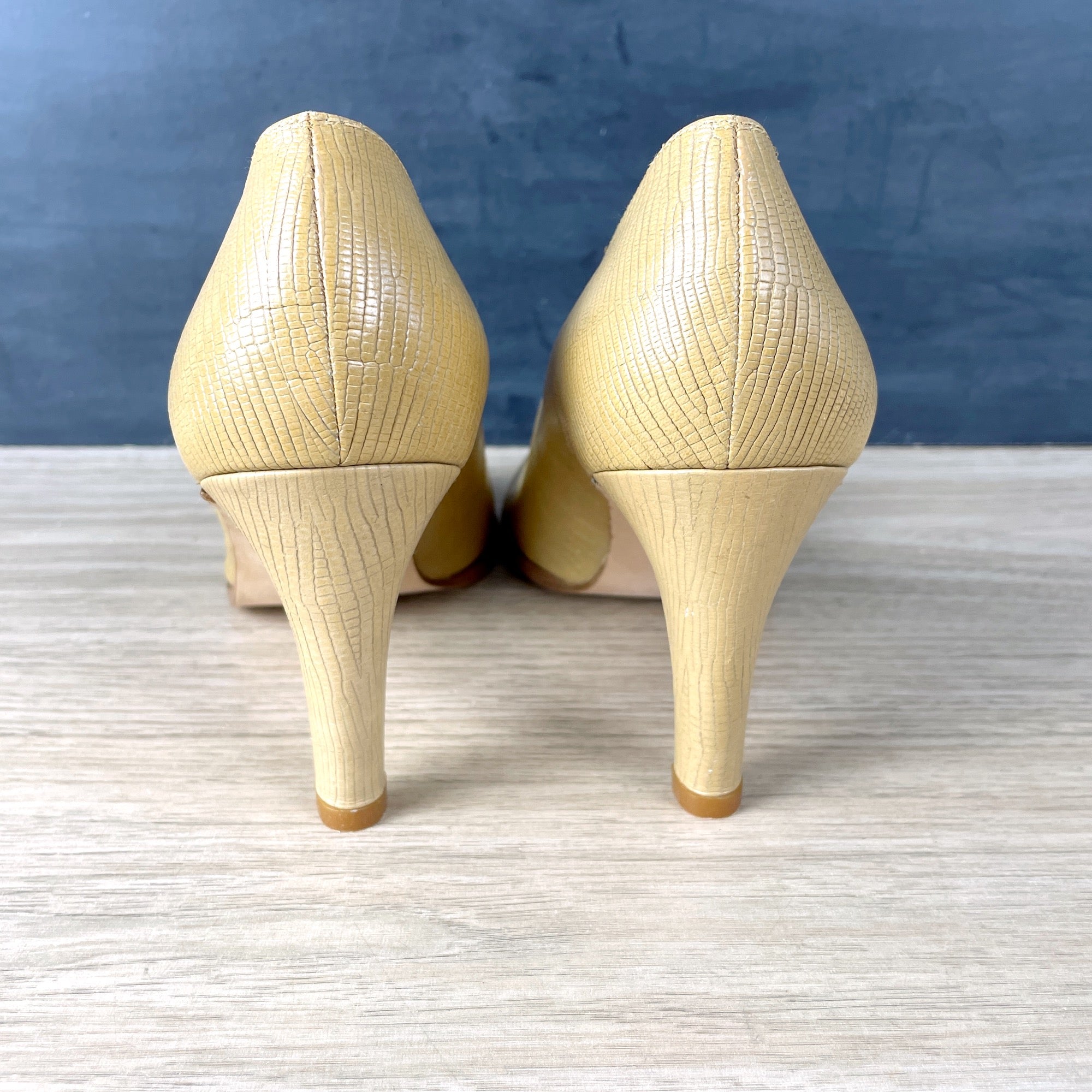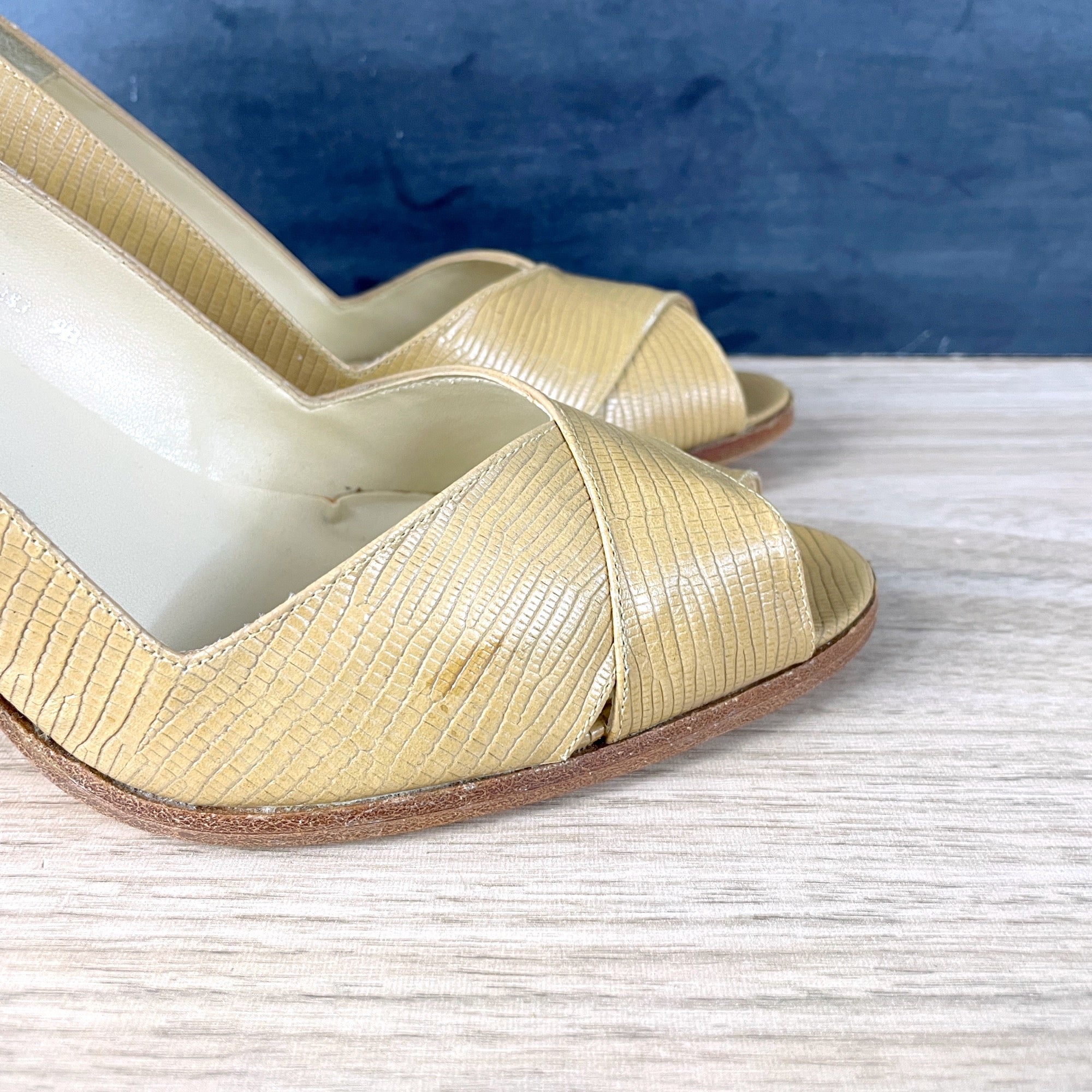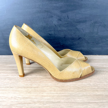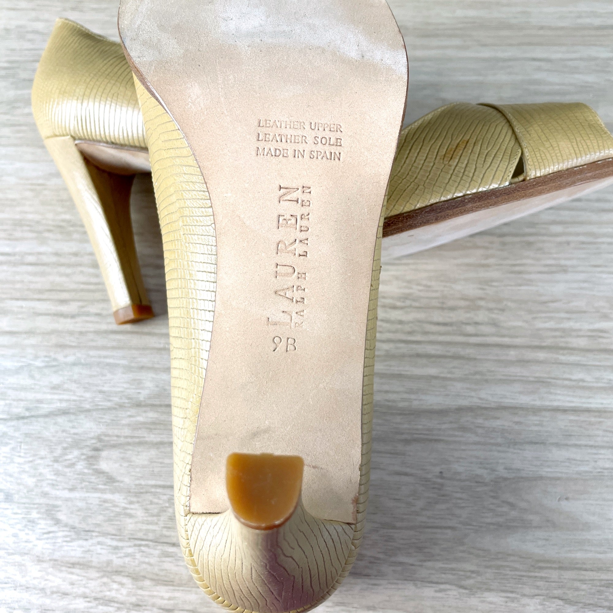 Ralph Lauren Whelmina caramel tan lizard print heels - size 9B - 1990s vintage