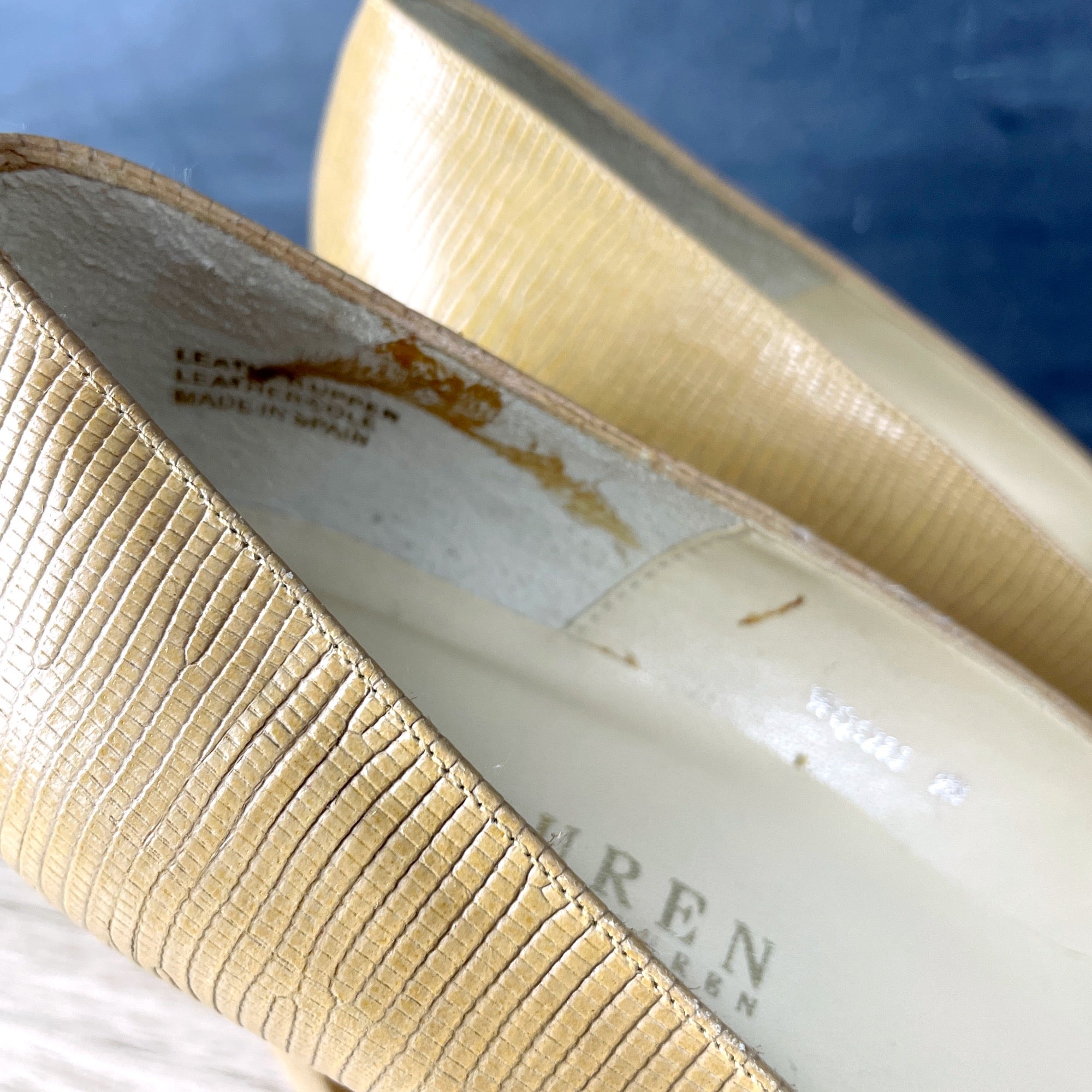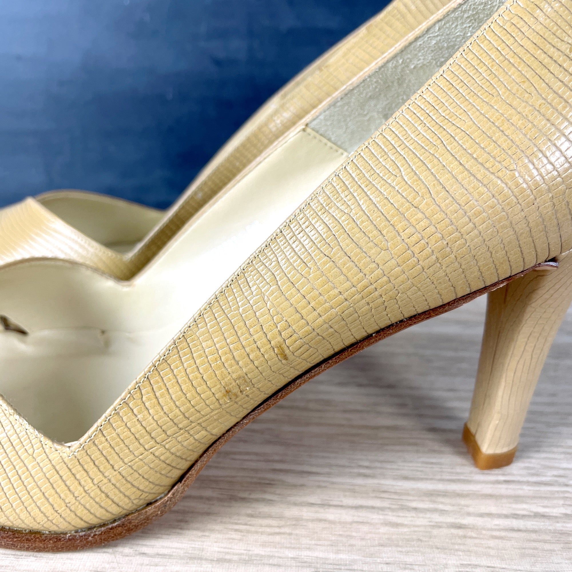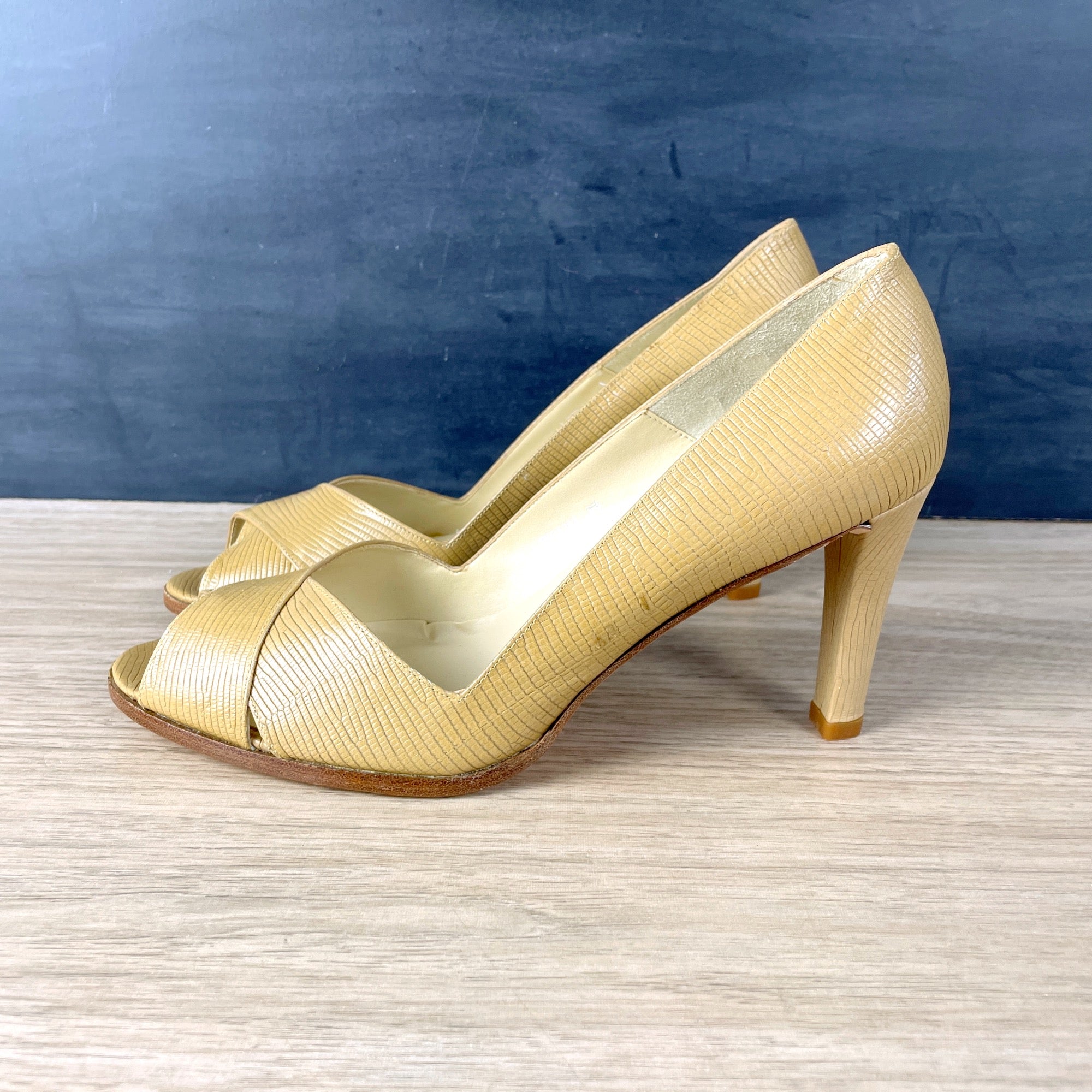 Ralph Lauren Whelmina caramel tan lizard print heels - size 9B - 1990s vintage