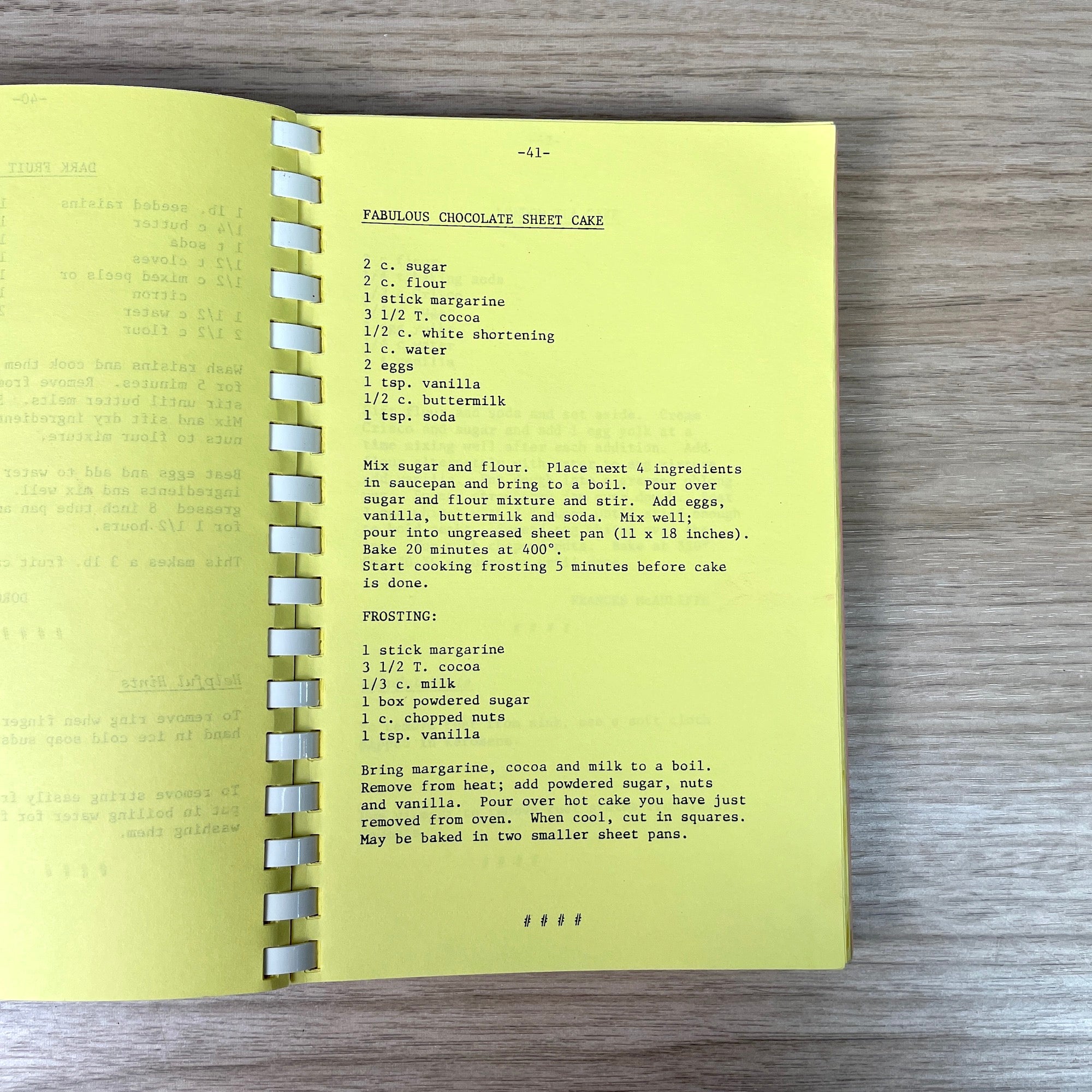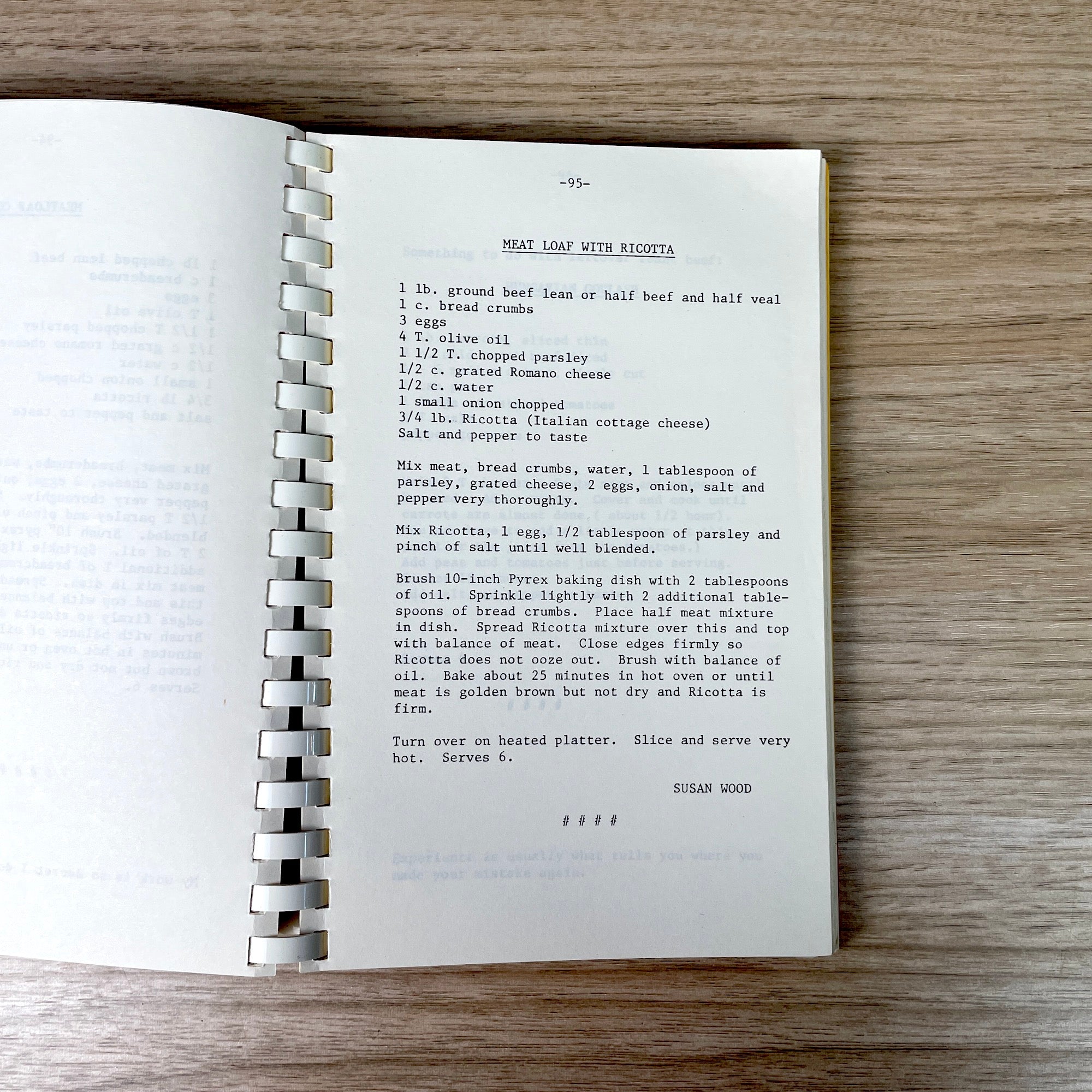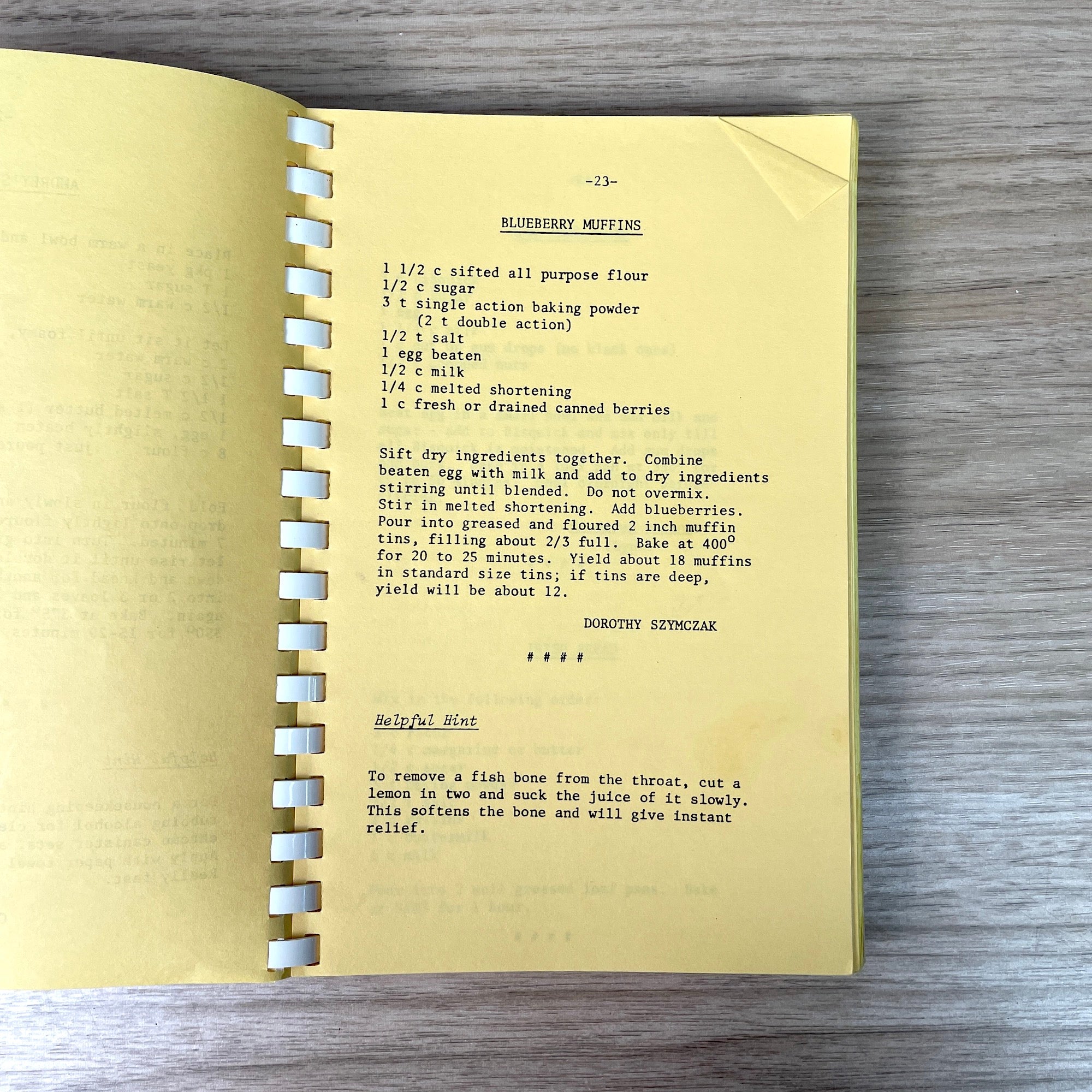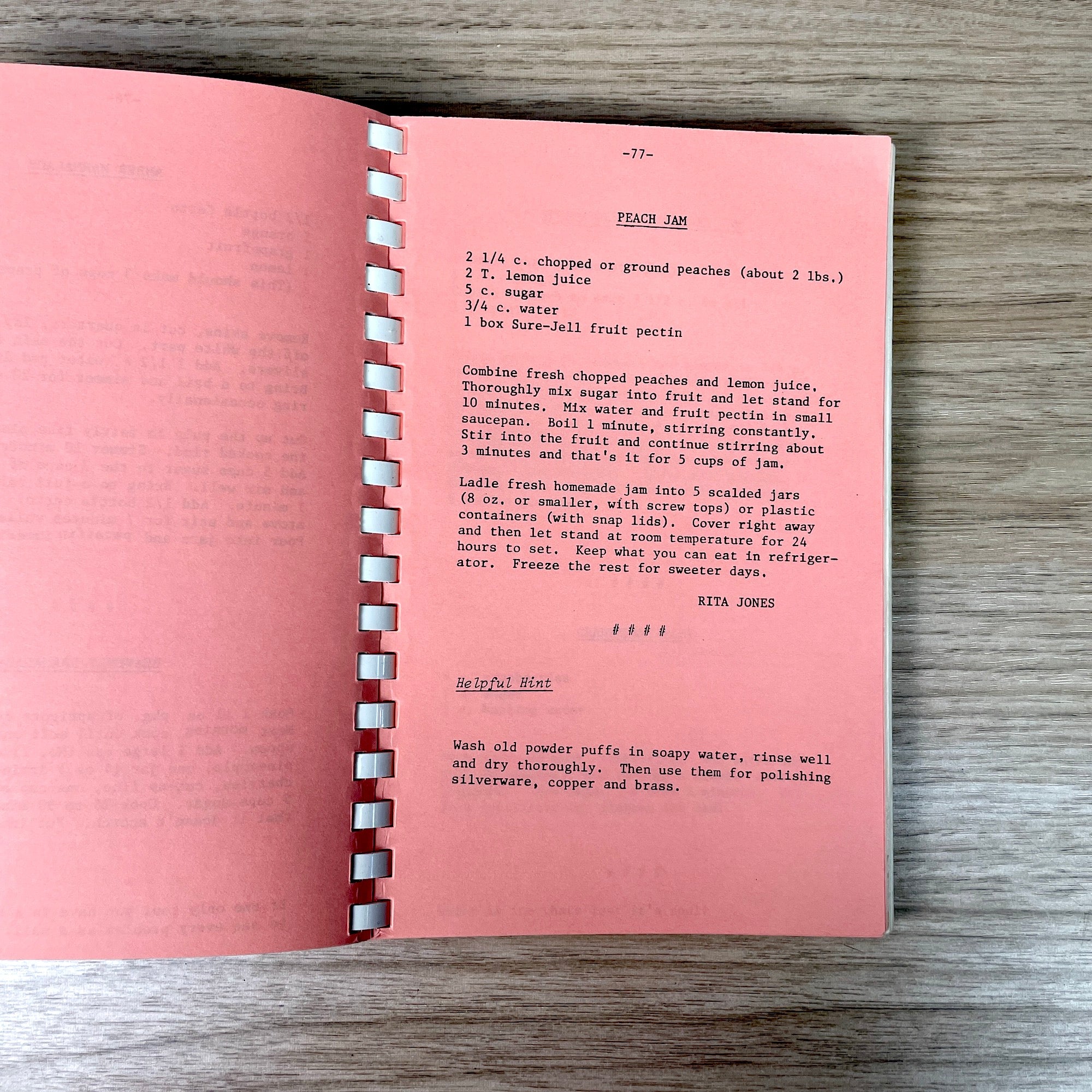 CONDITION Good. There are stains on some pages and the cover and a few bent pages, but nothing you wouldn't expect from a vintage community cookbook.