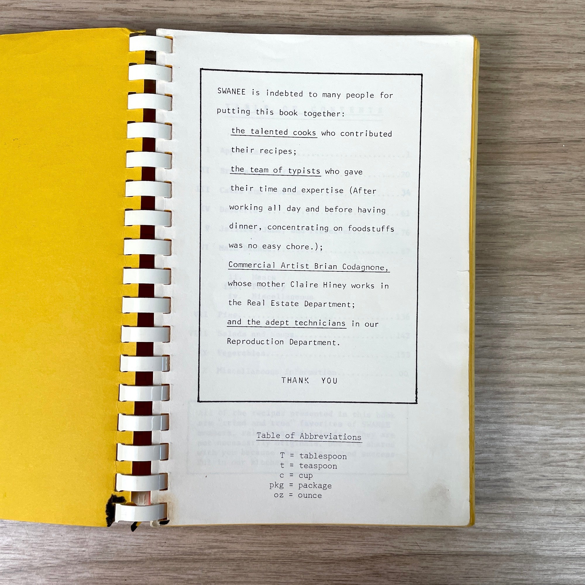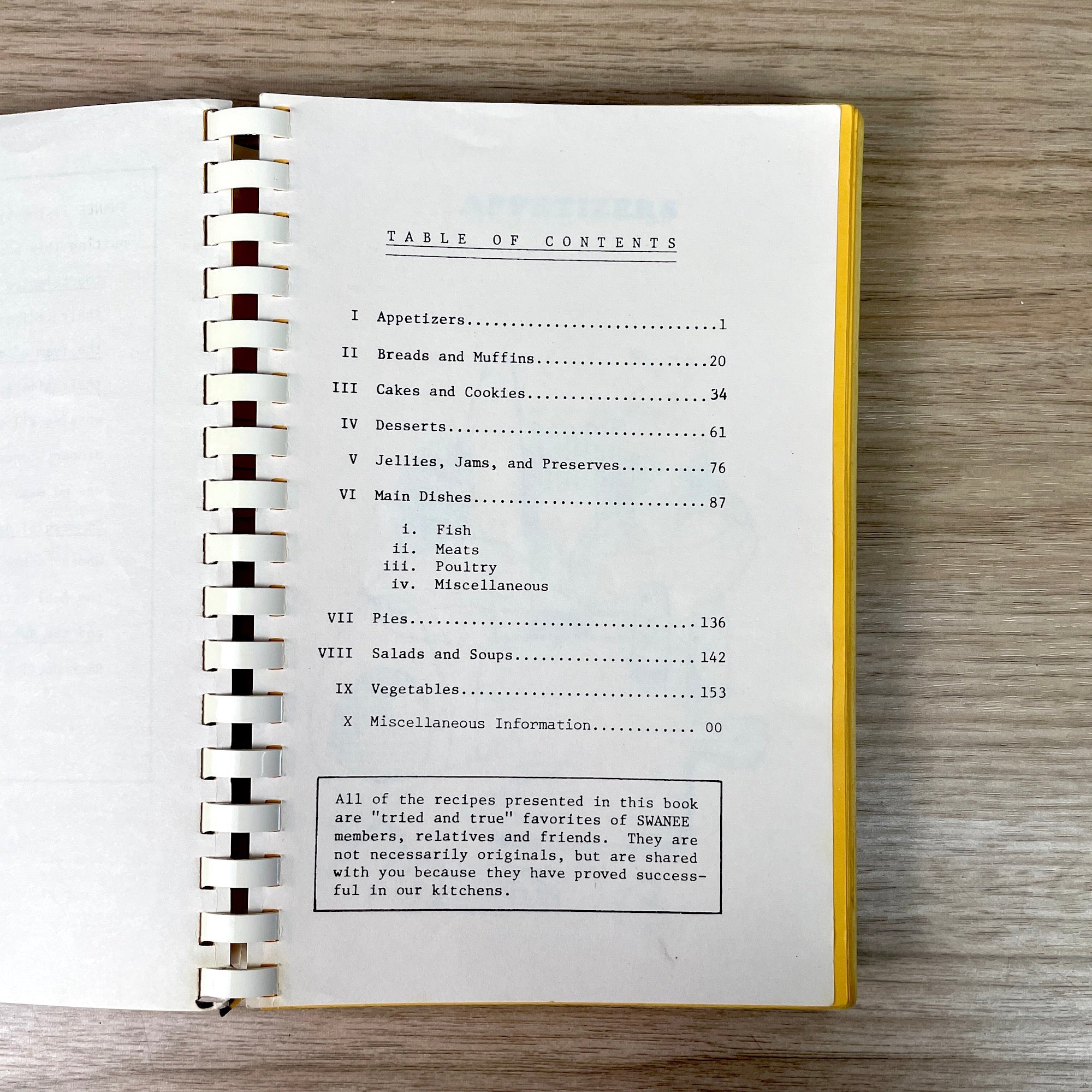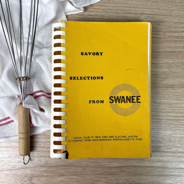"Savory Selections from SWANEE," the Social Club of the New England Electric System in Westborough, MA. Community cookbook with comb binding. Typed and photocopied pages. Card stock cover. Likely from the 1970s or 1980s, undated, alas.
