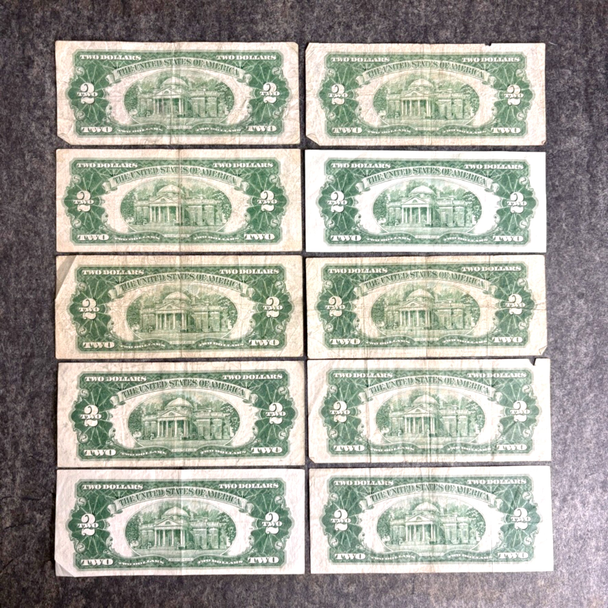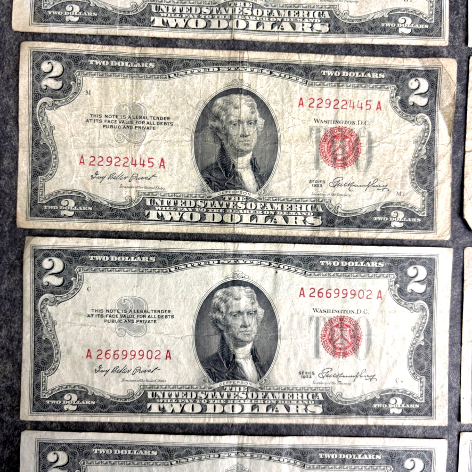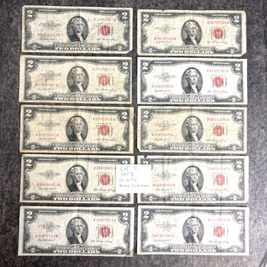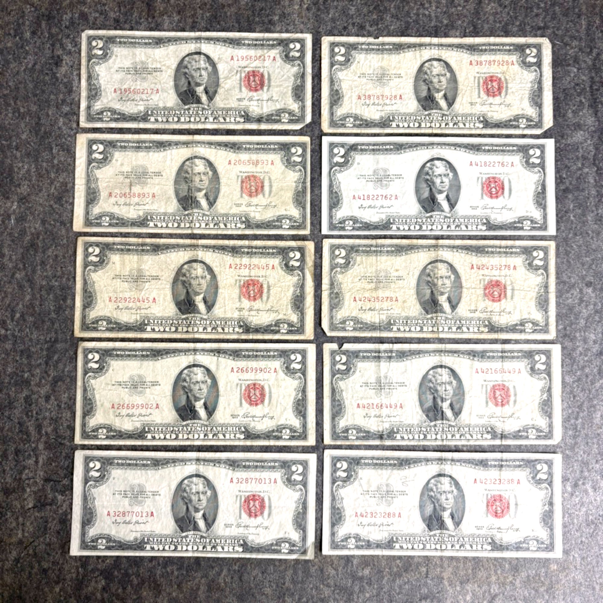 10 Vintage 1953 Red Seal $2 Bills – U.S. Note – Circulated Legal Tender