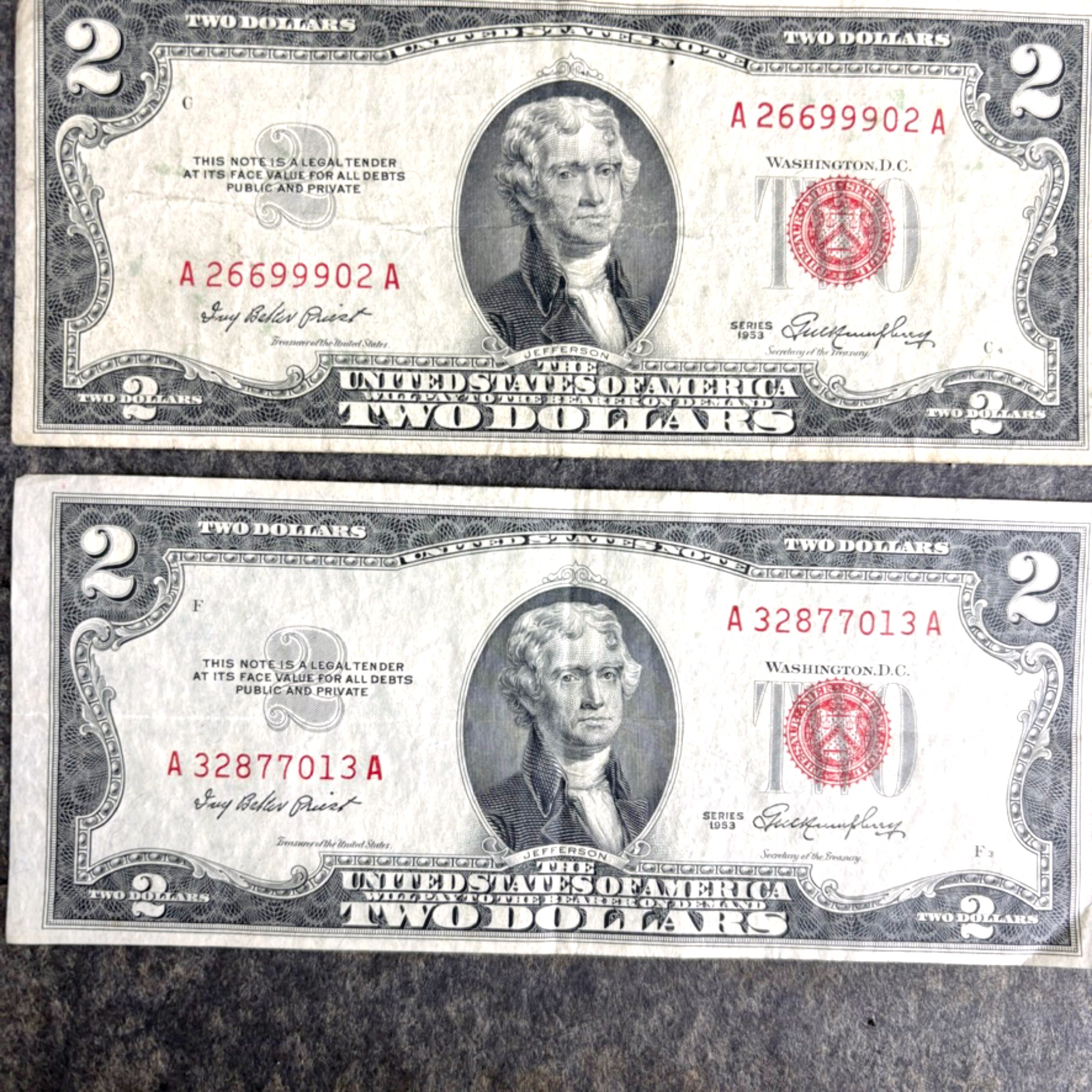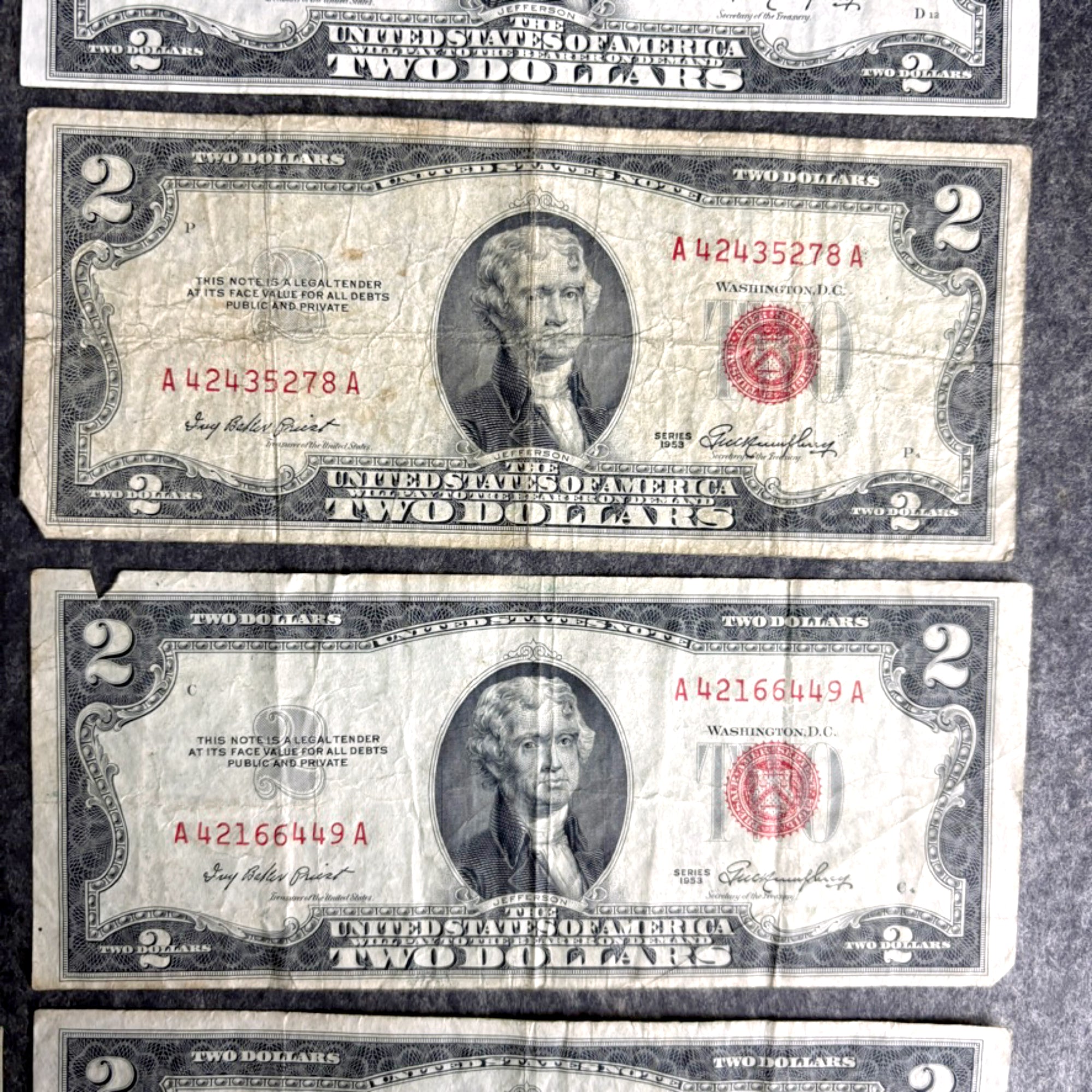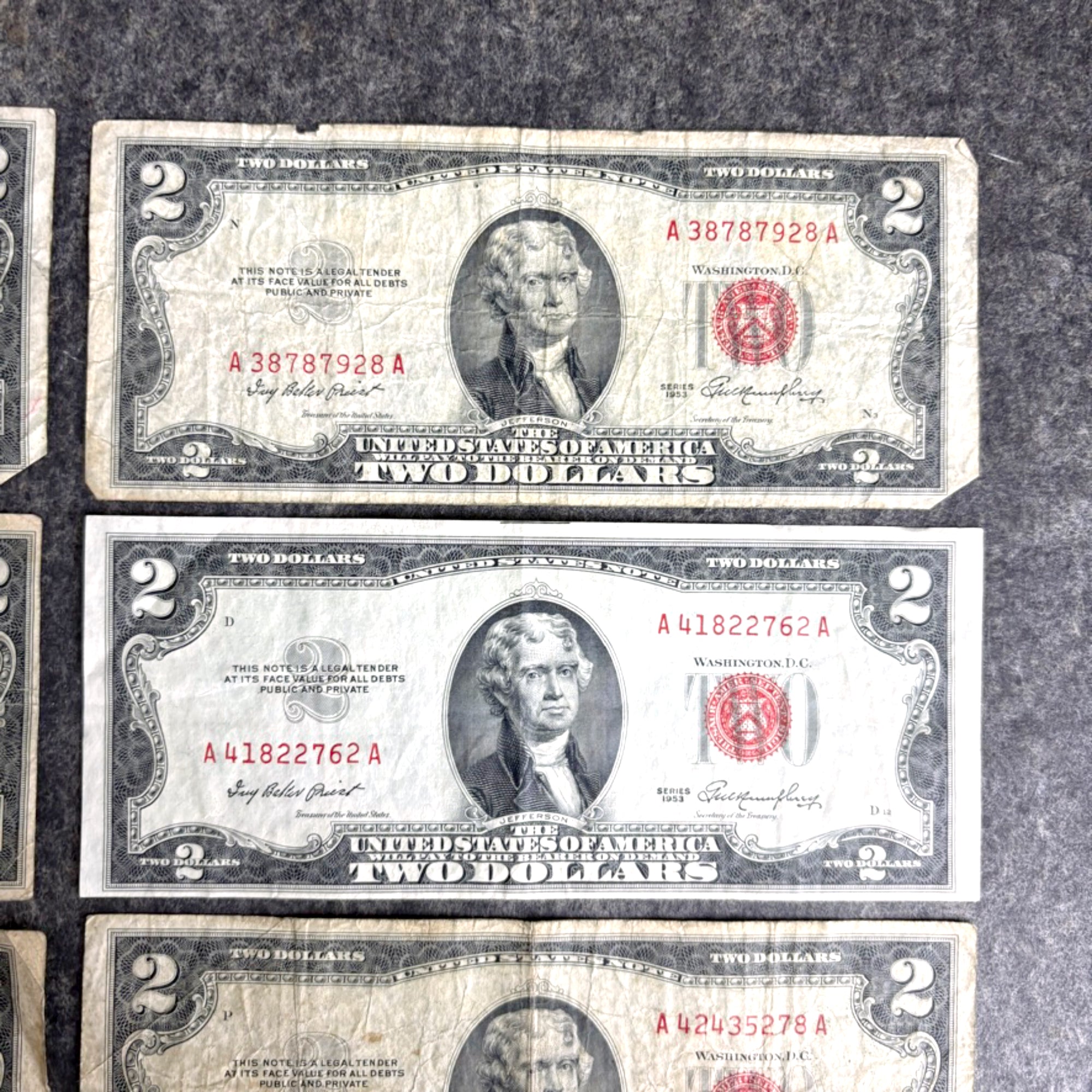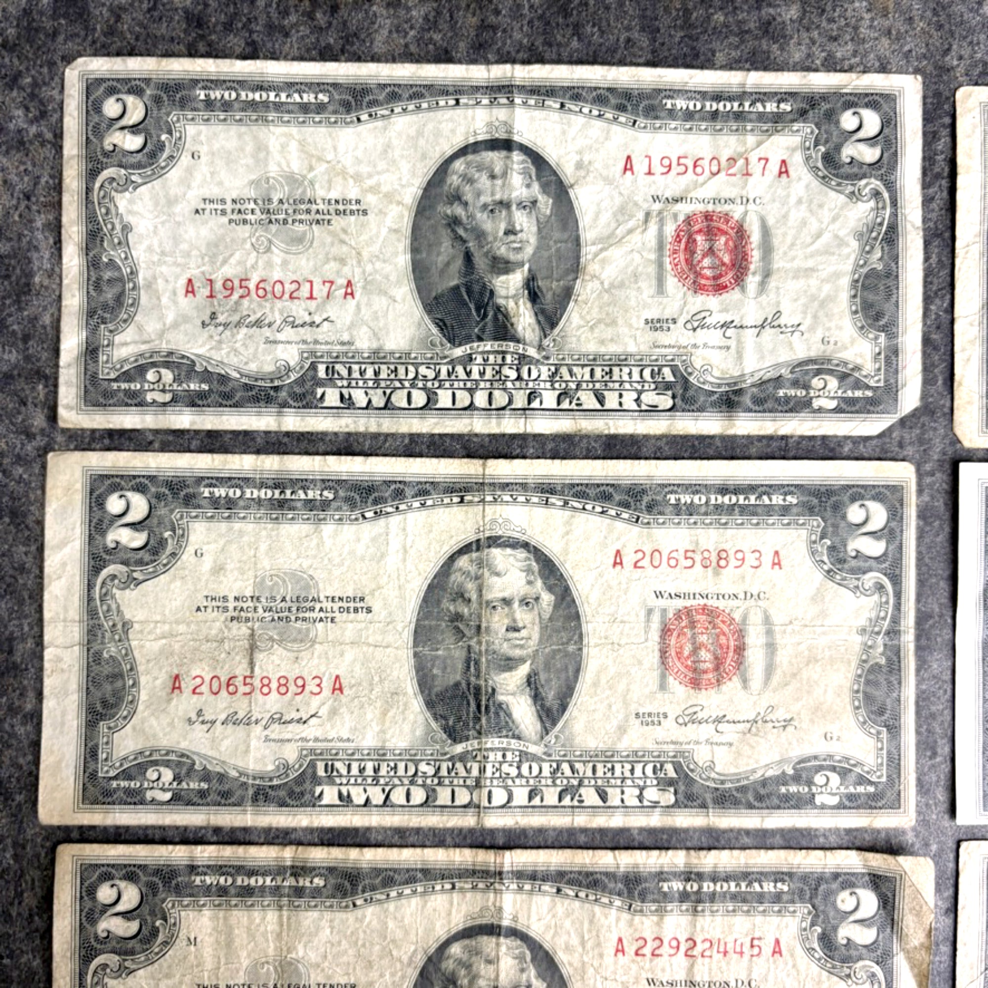 10 Vintage 1953 Red Seal $2 Bills – U.S. Note – Circulated Legal Tender