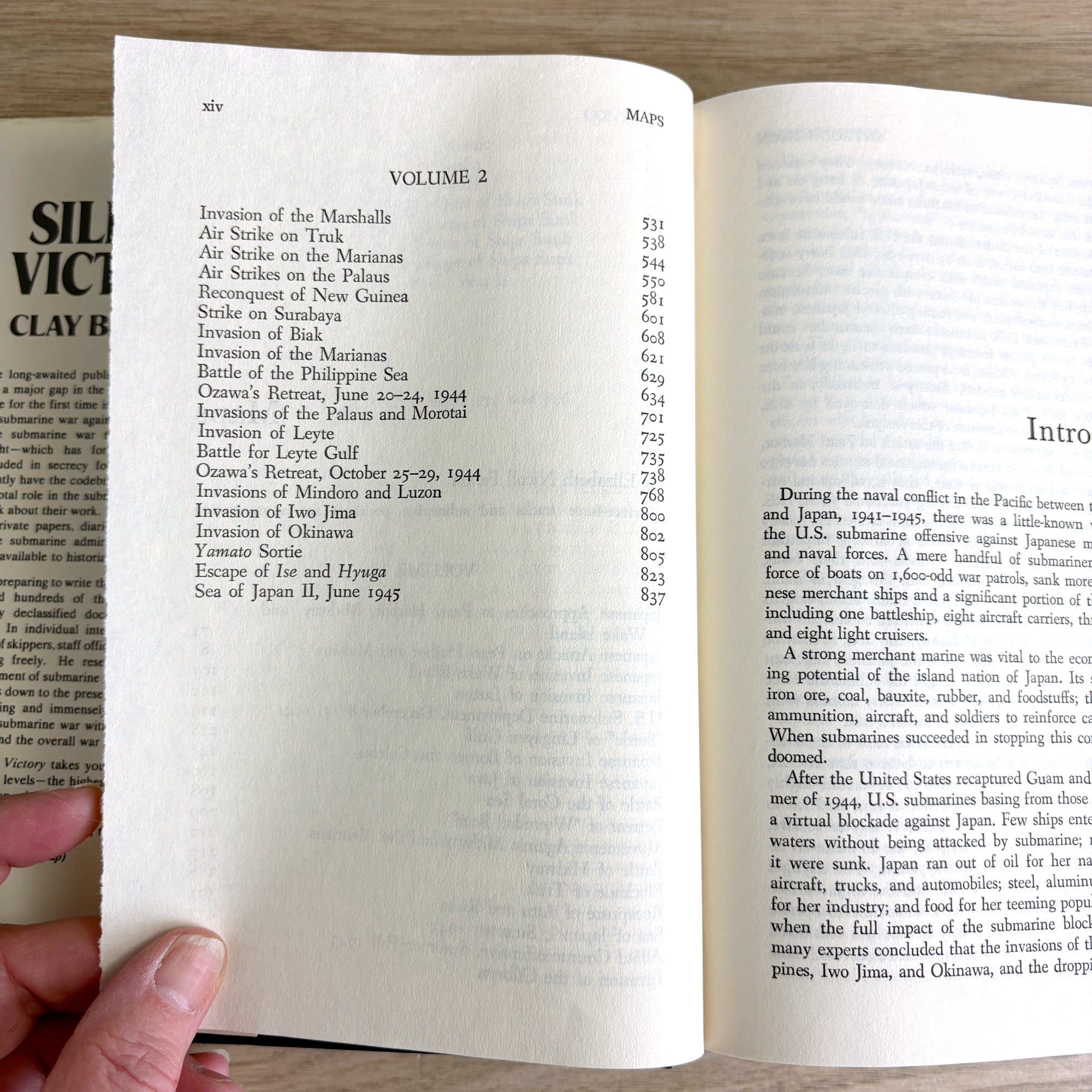 Silent Victory The U.S. Submarine War Against Japan is a two-volume hardcover Book Club Edition, Published by J. P. Lippincott Company, 1975.