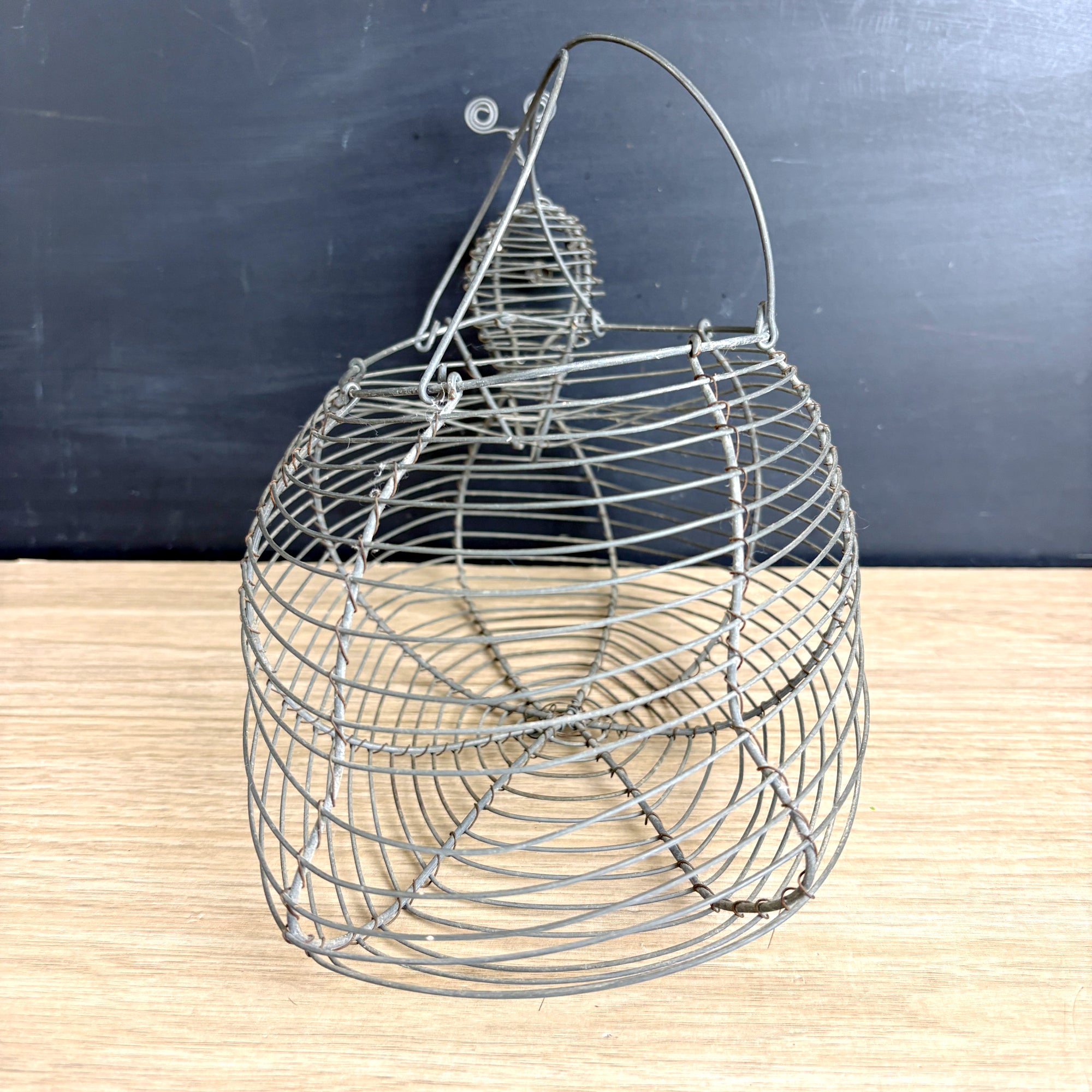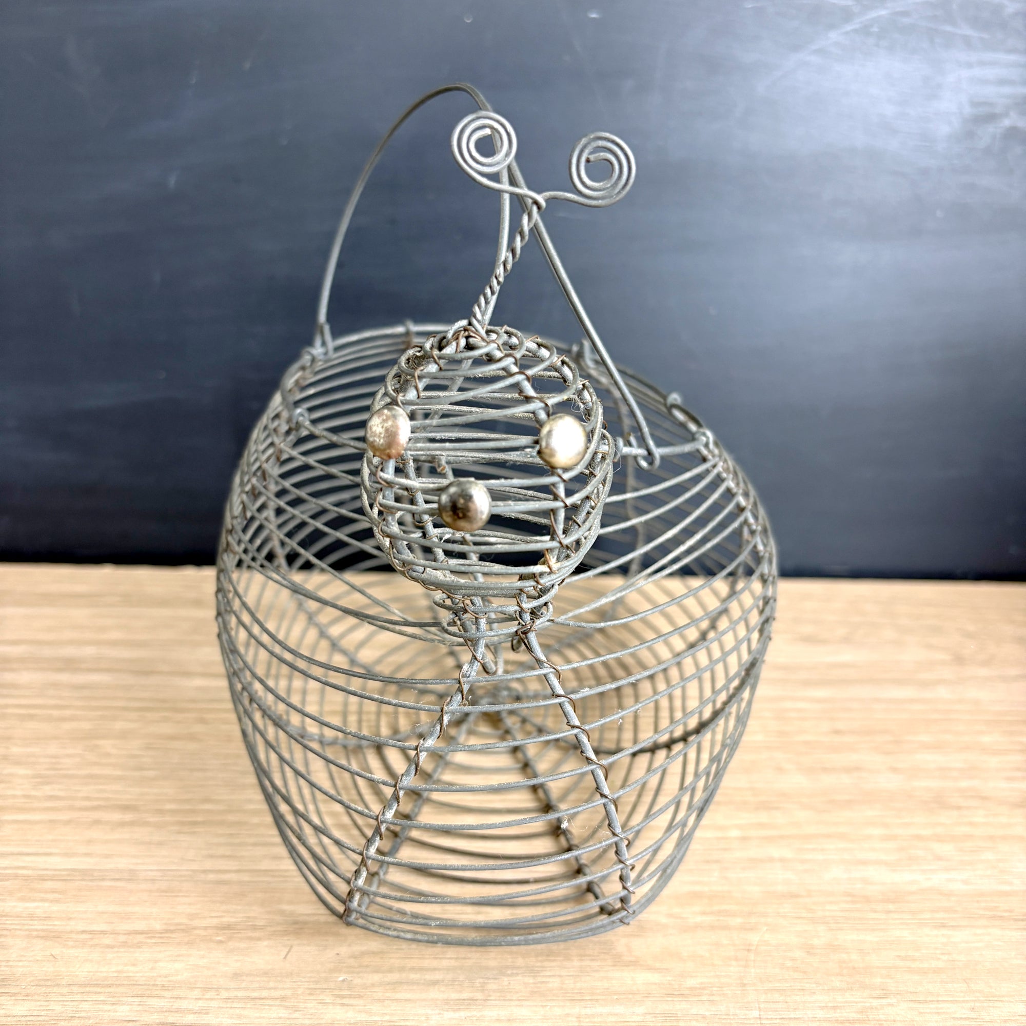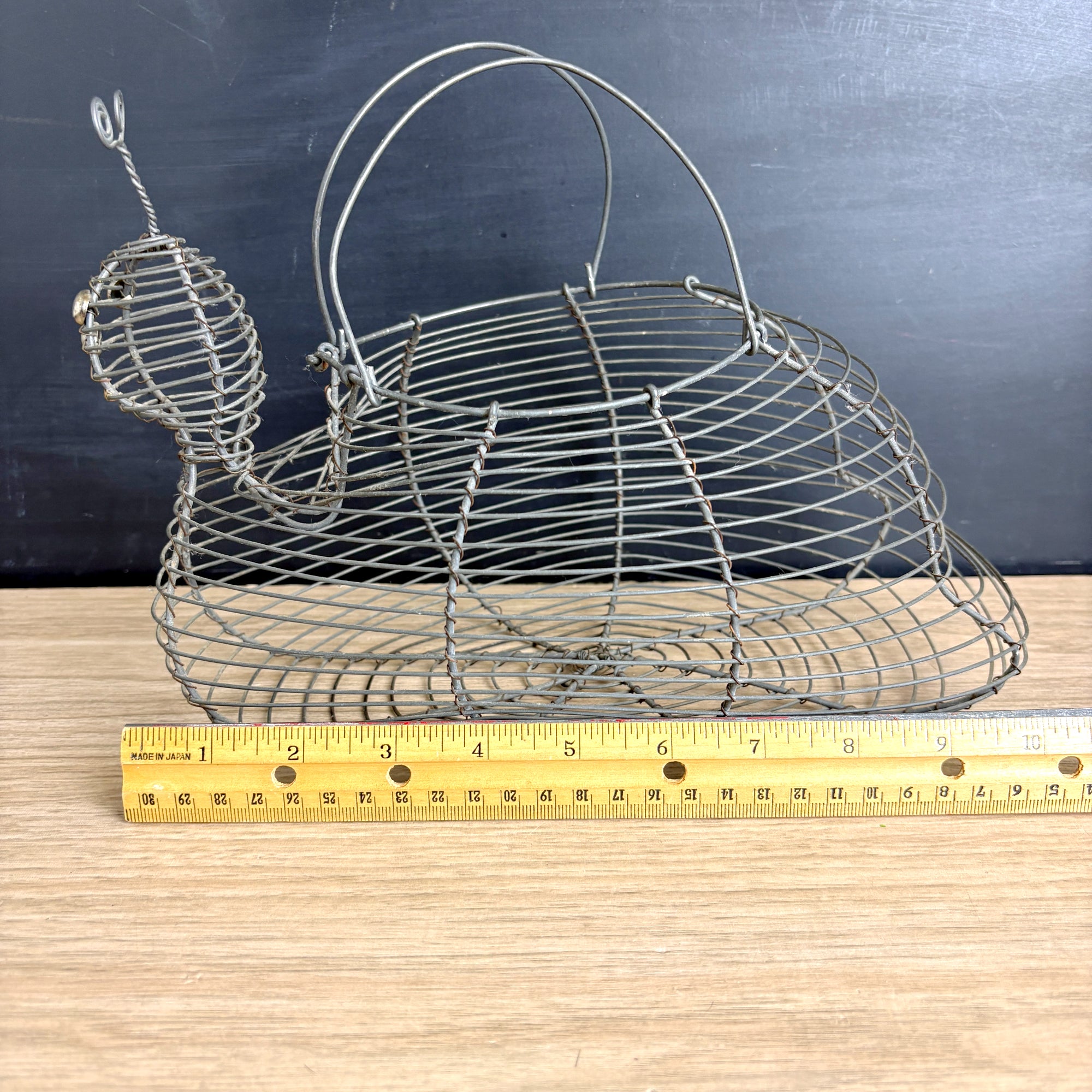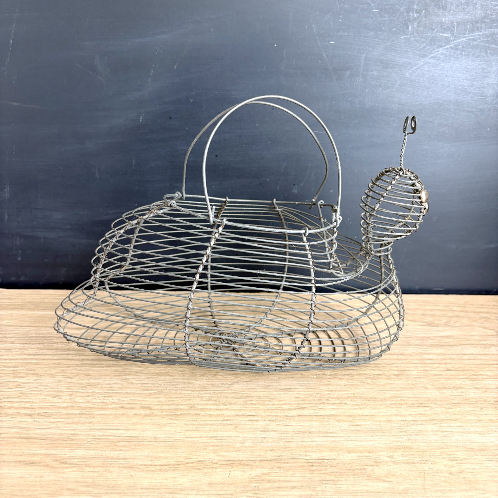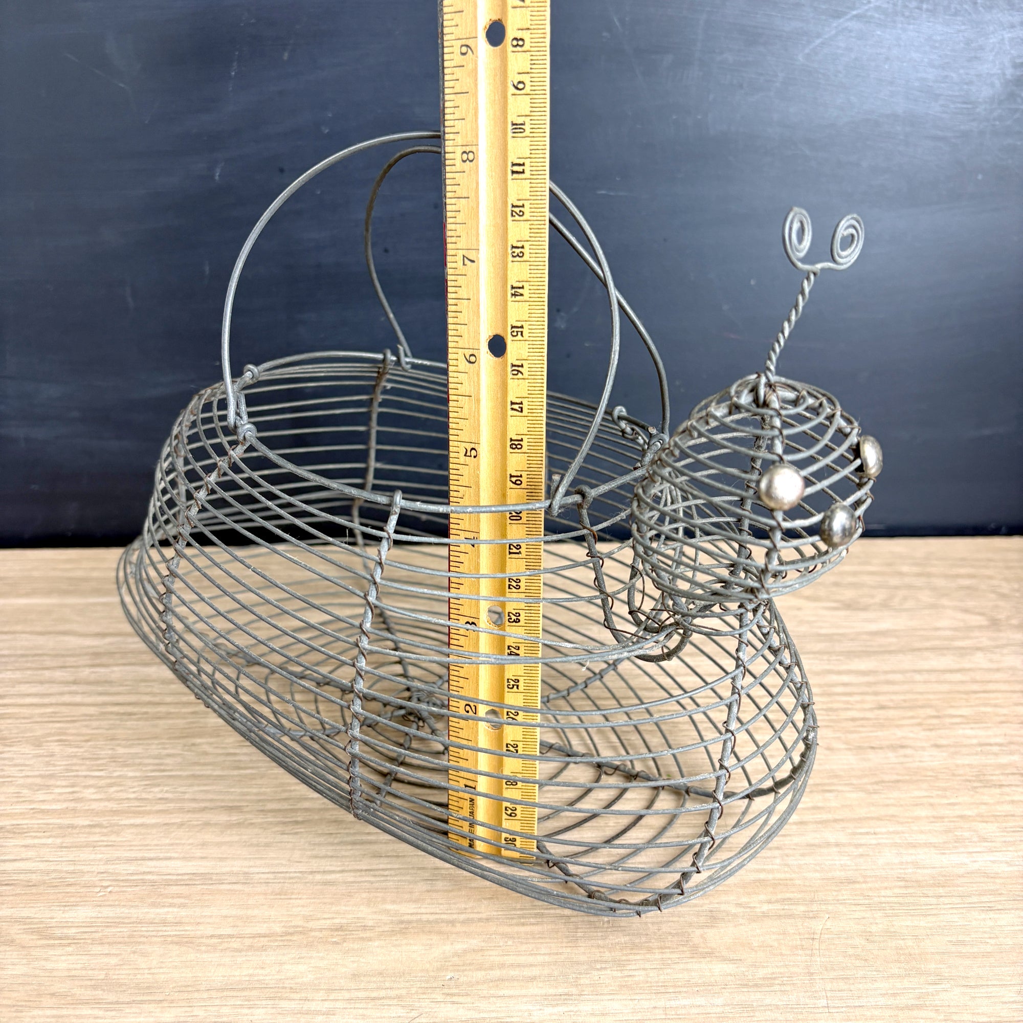 Snail-shaped handled wire basket - fruit, garden, egg - rustic vintage