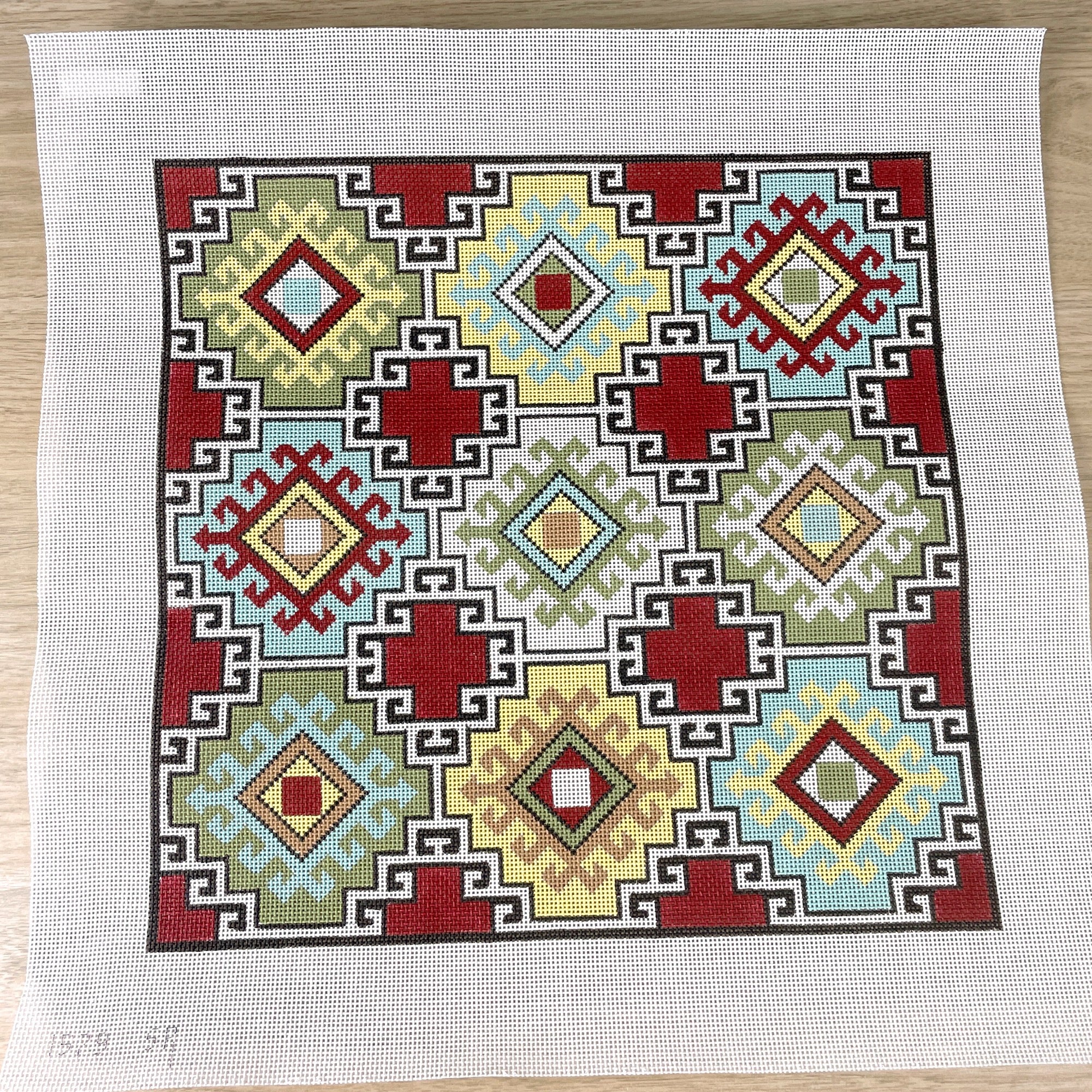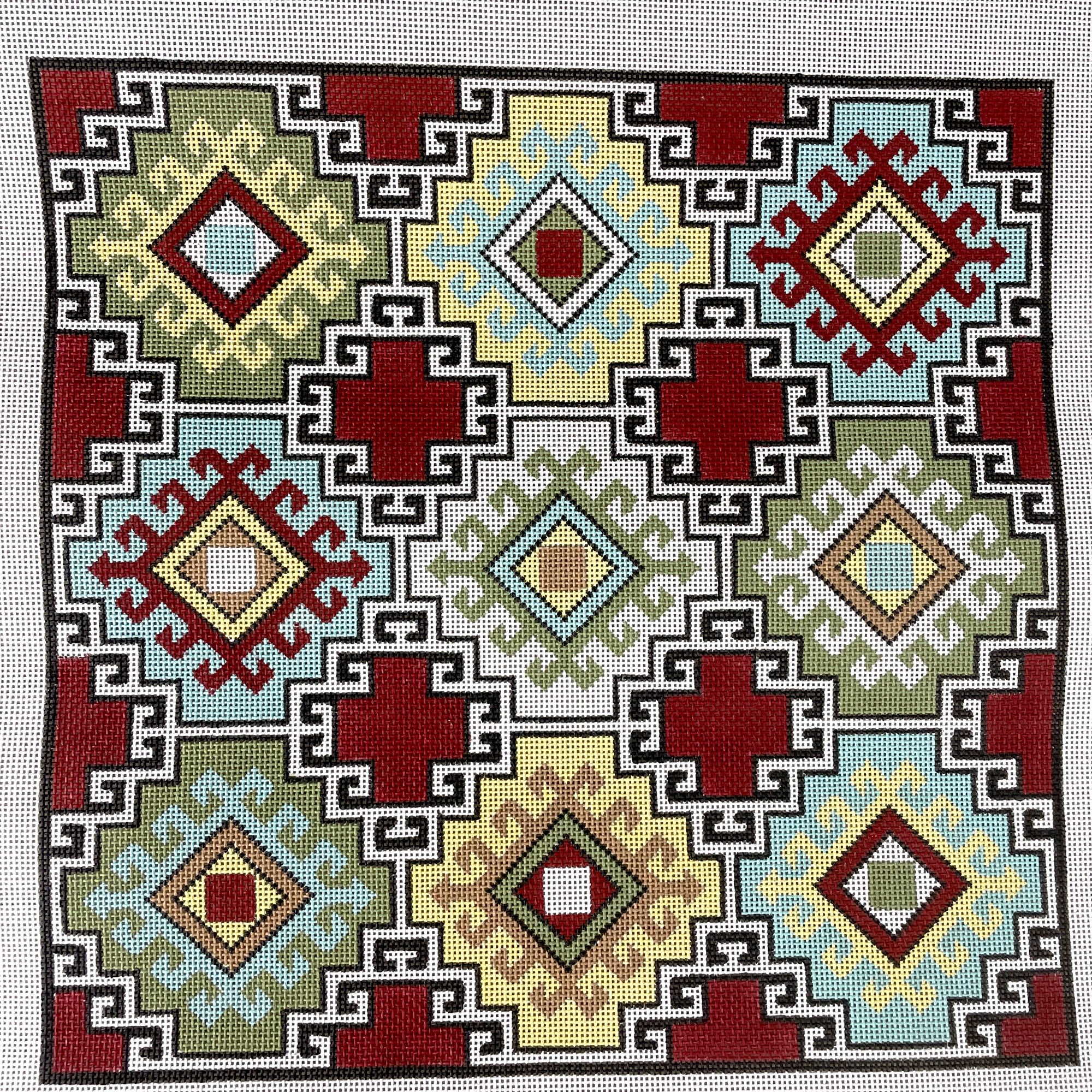 Handpainted needlepoint canvas,"Kilim I D," from Susan Roberts. #1579. Retail $270.