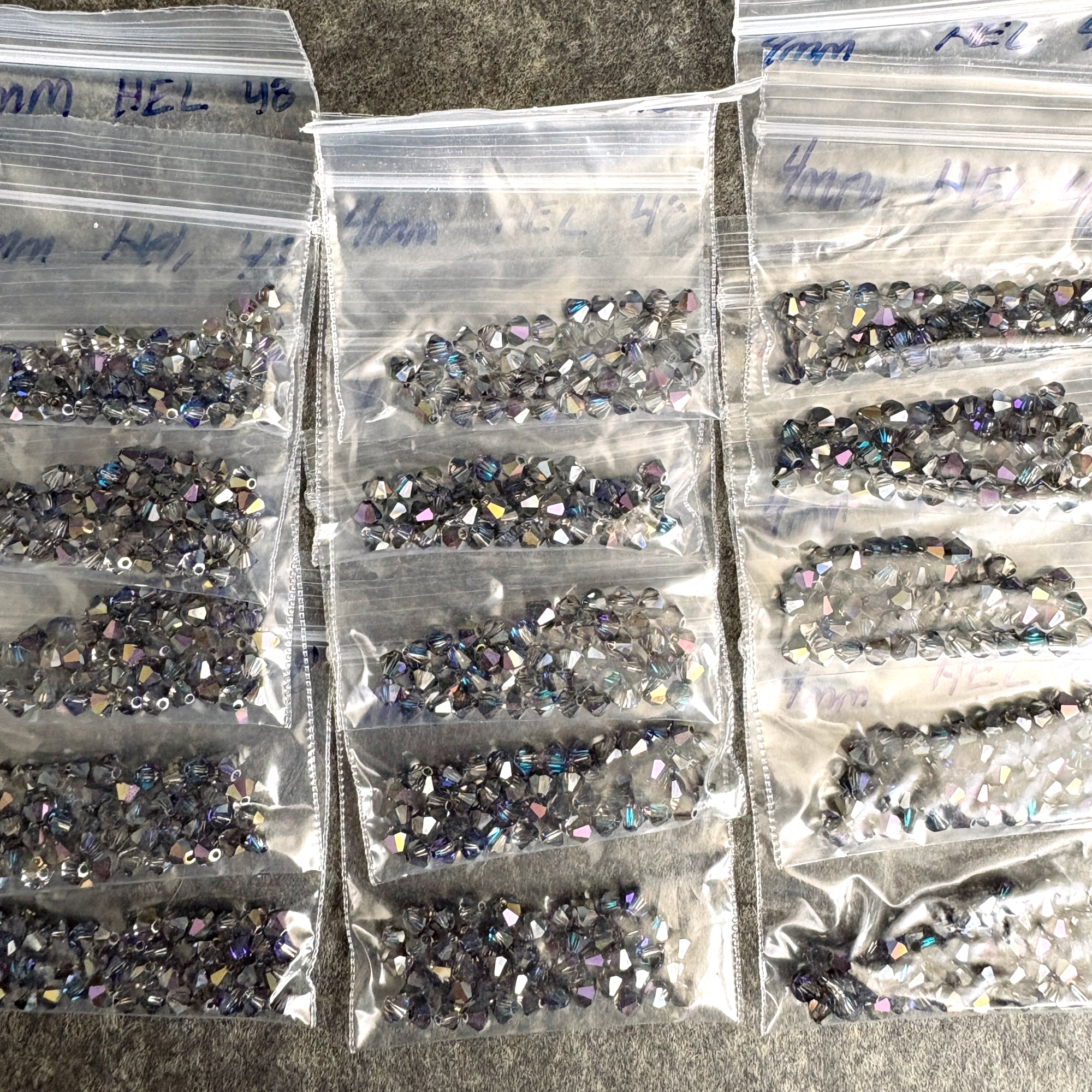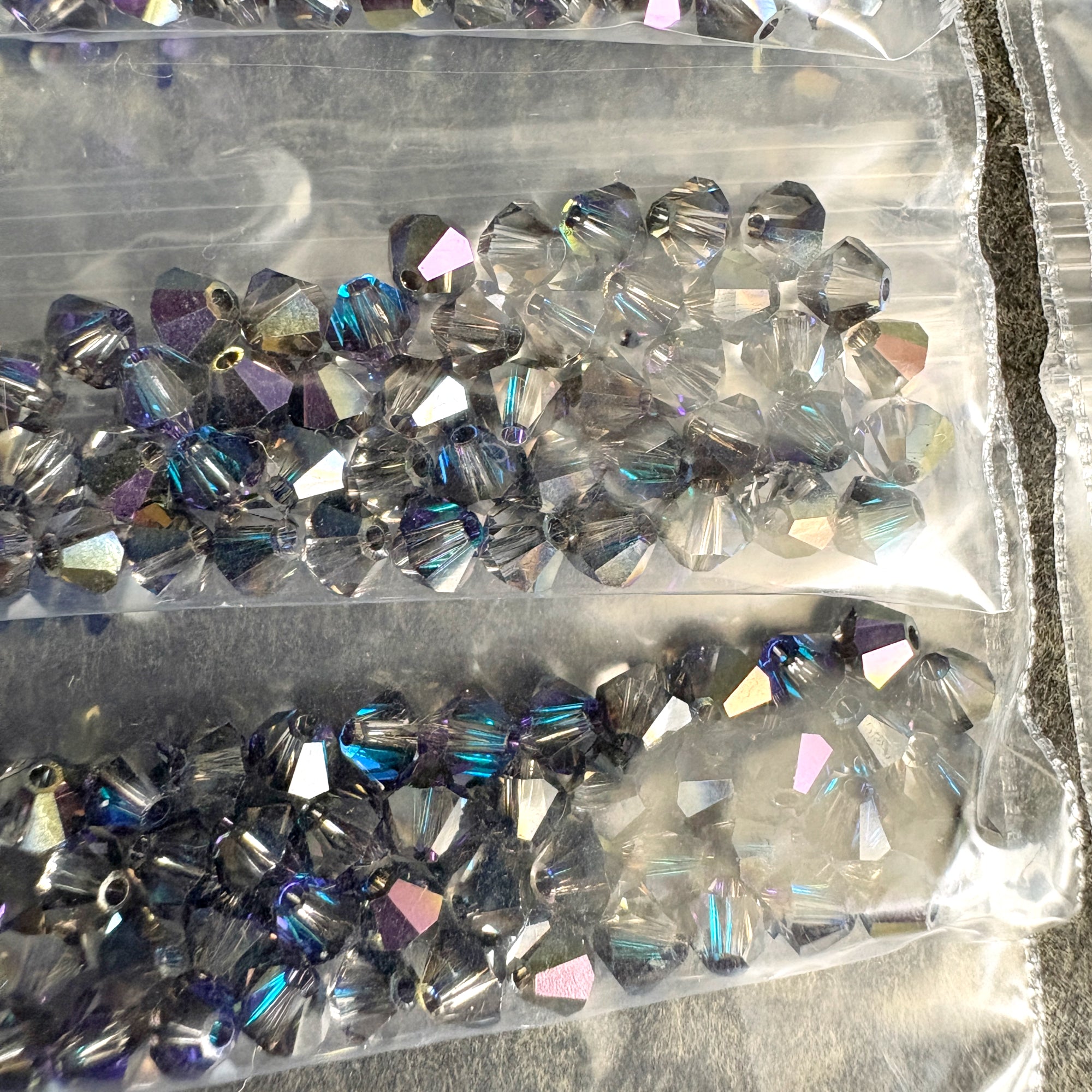 Lot of 15 bags of Swarovski 4mm bicone crystal beads with 48/bag  crystal beads for a total of 720 beads, all heliotrope.
