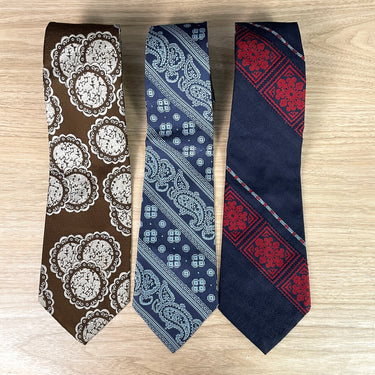 Three vintage wide neckties from the 1970s.