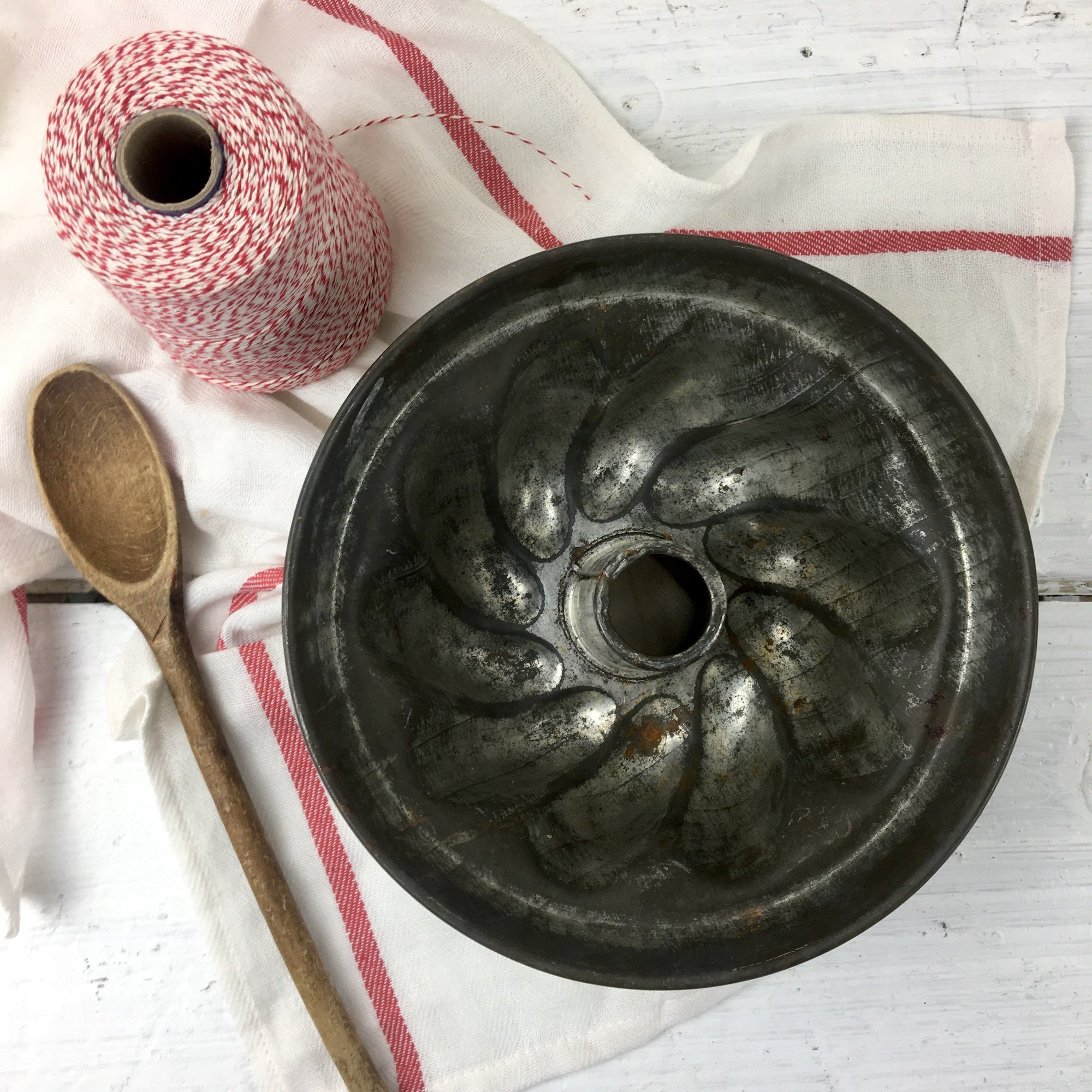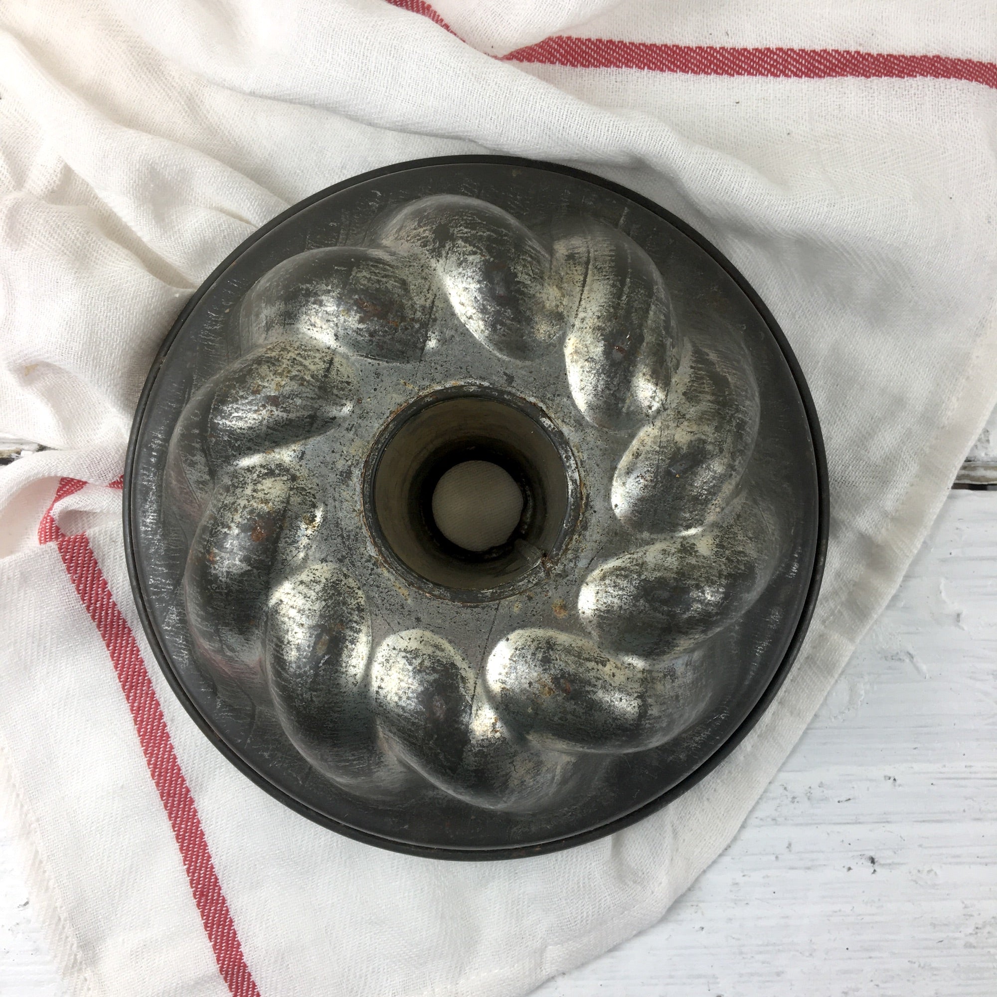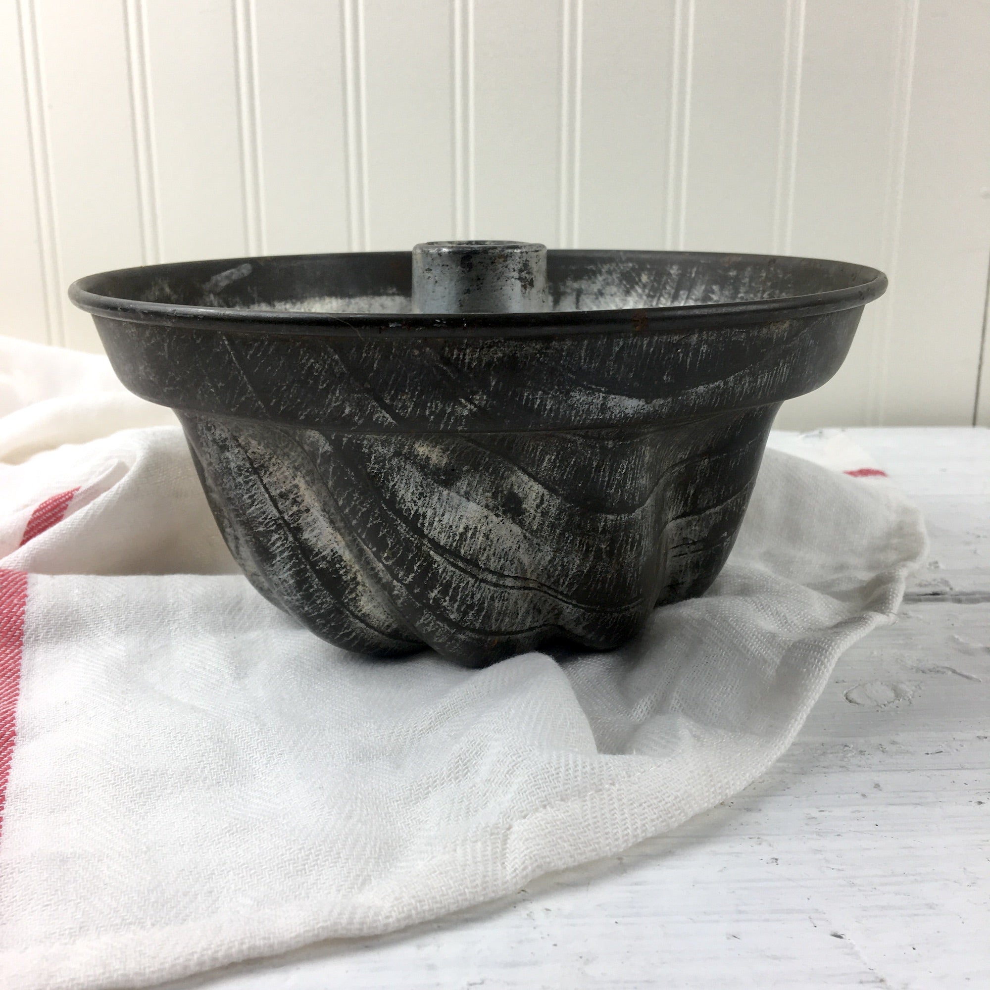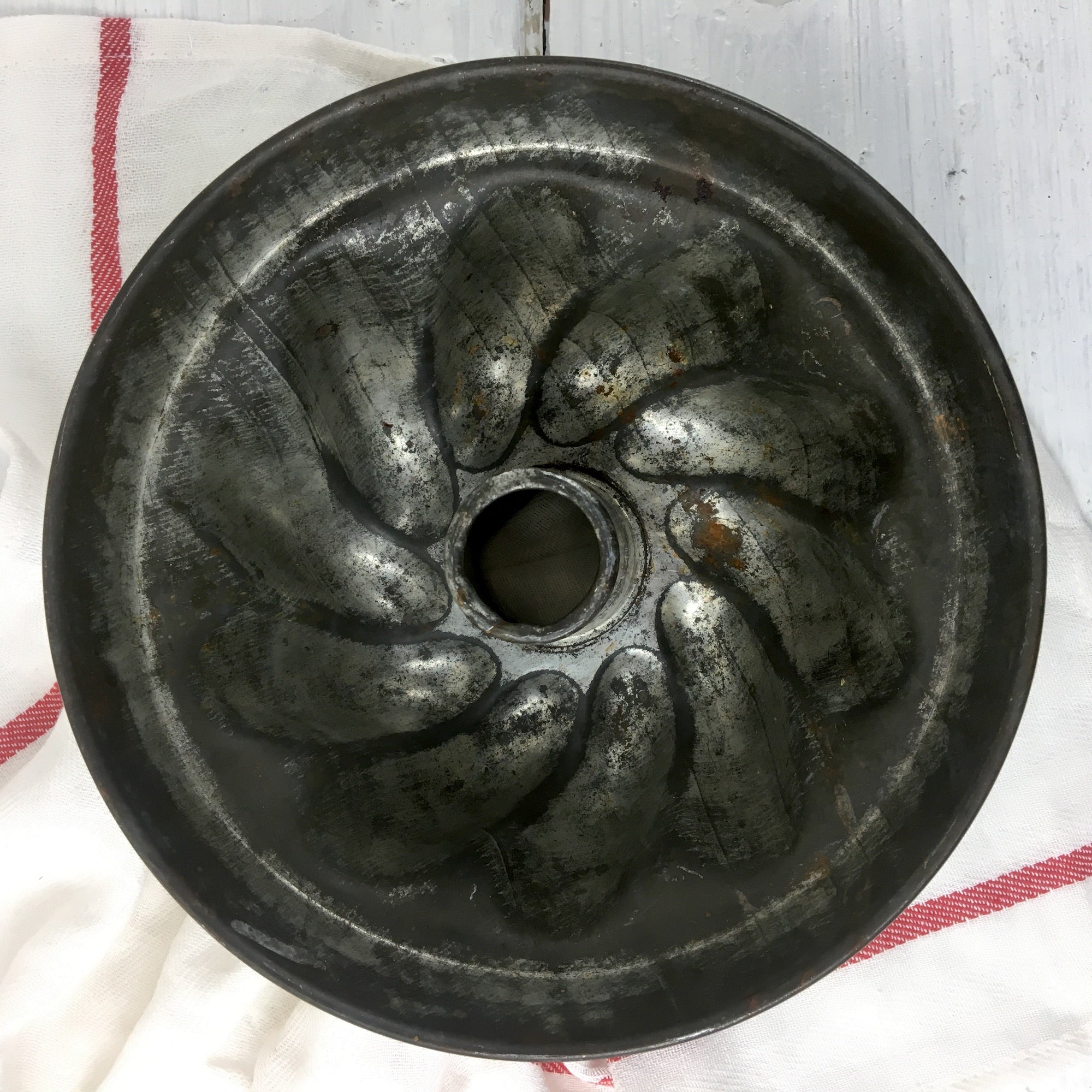 Tinned steel swirl sides tube cake pan - vintage baking pan
