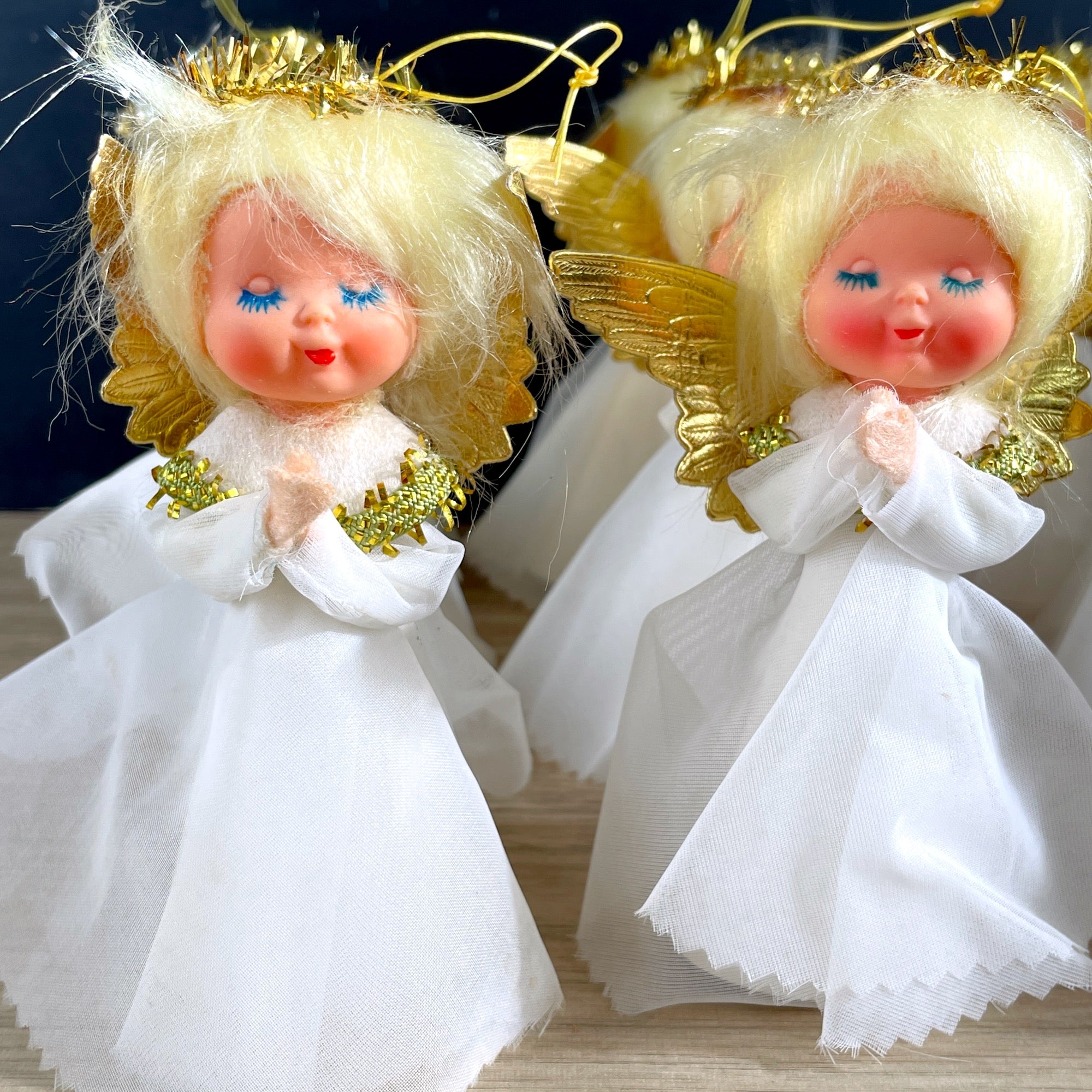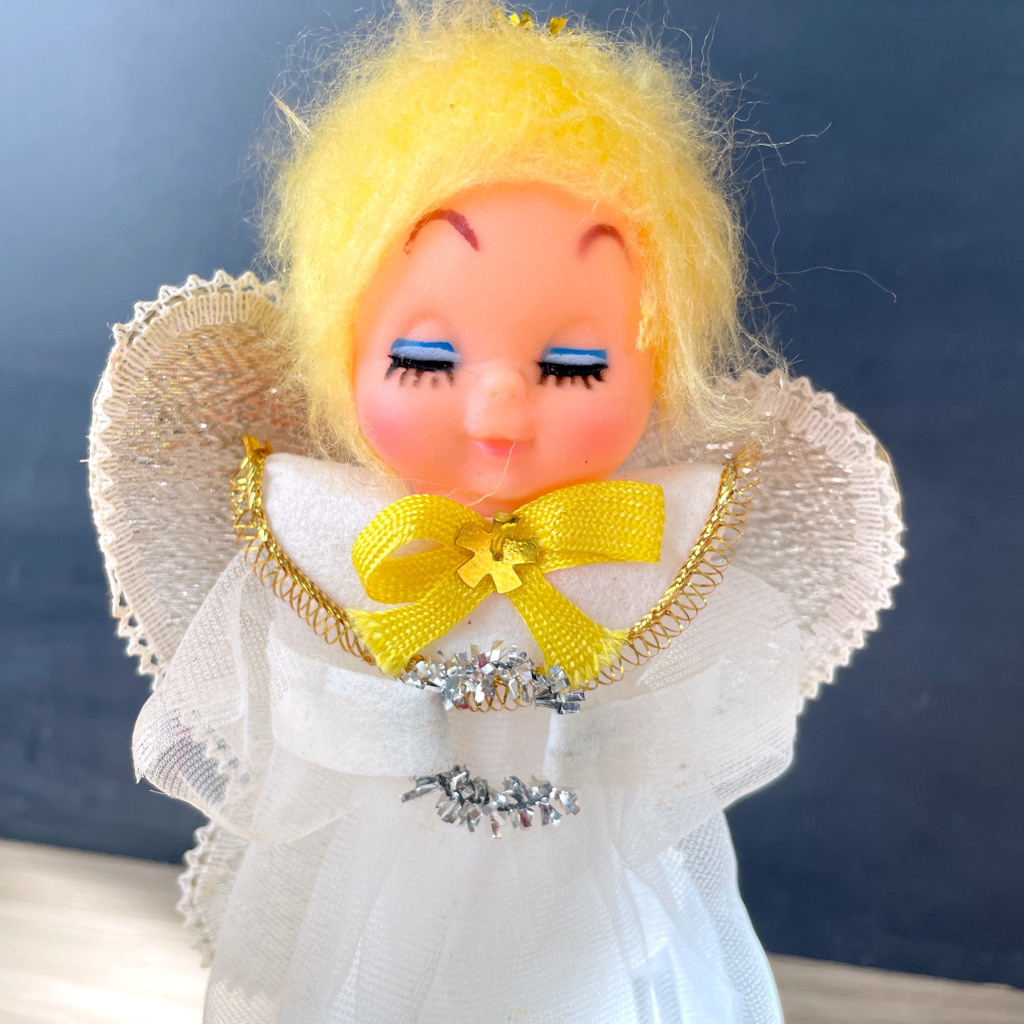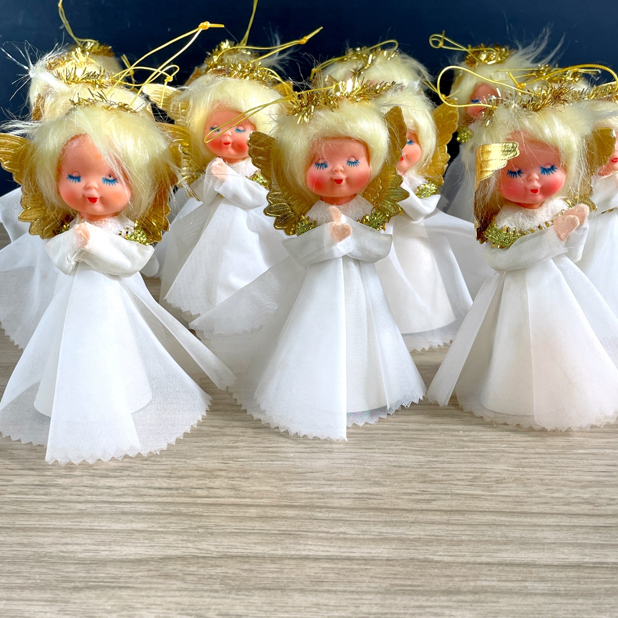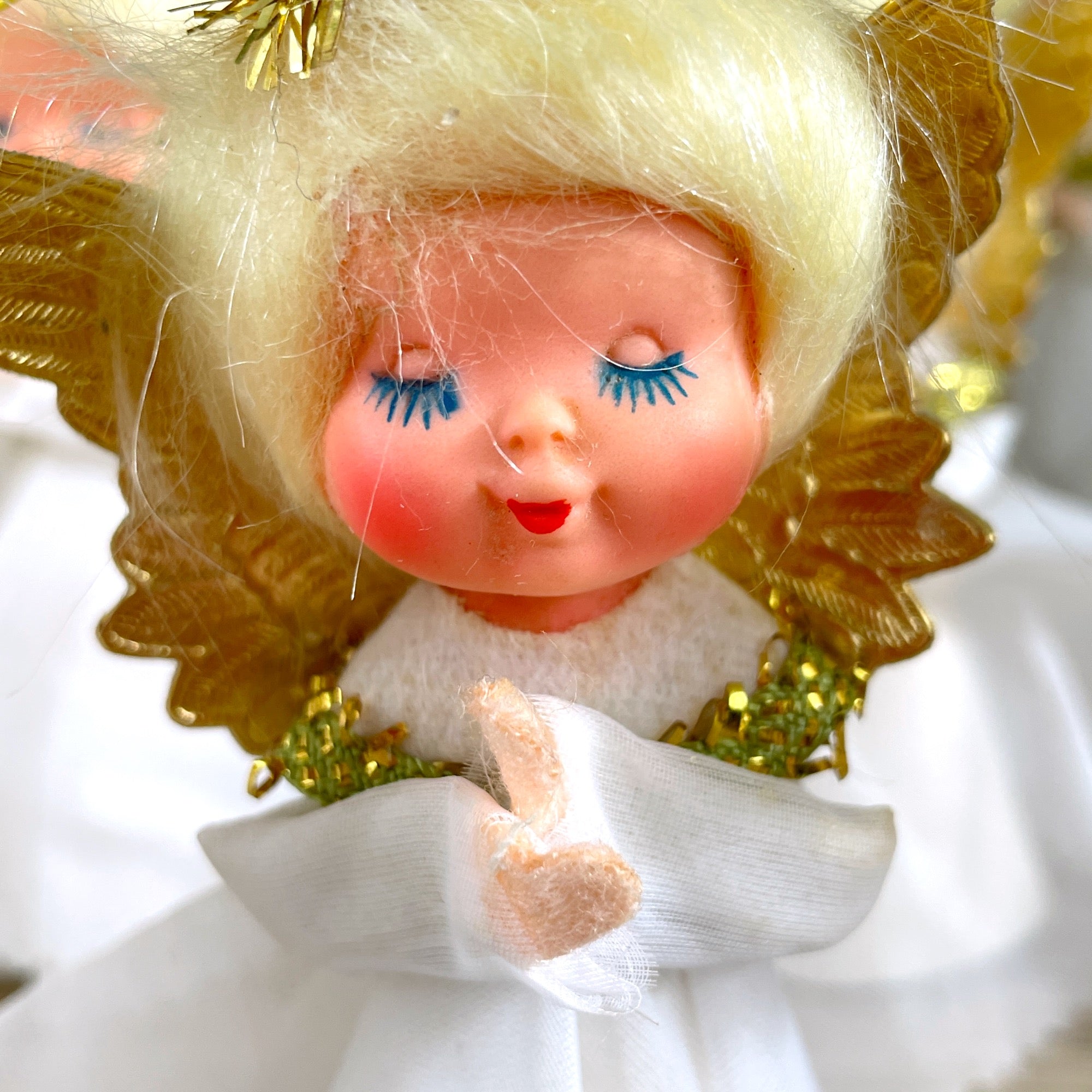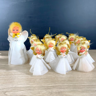 Treetop angel and 15 angel ornaments - plastic heads - 1960s vintage