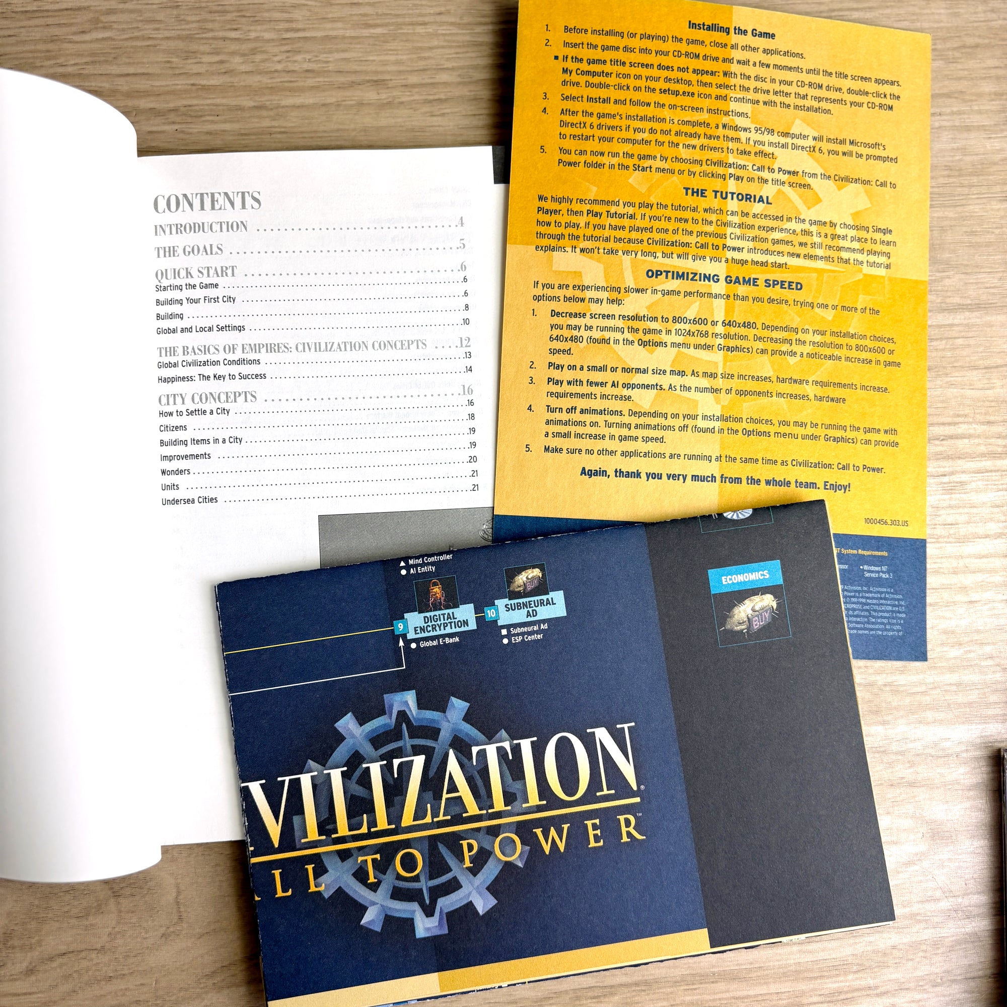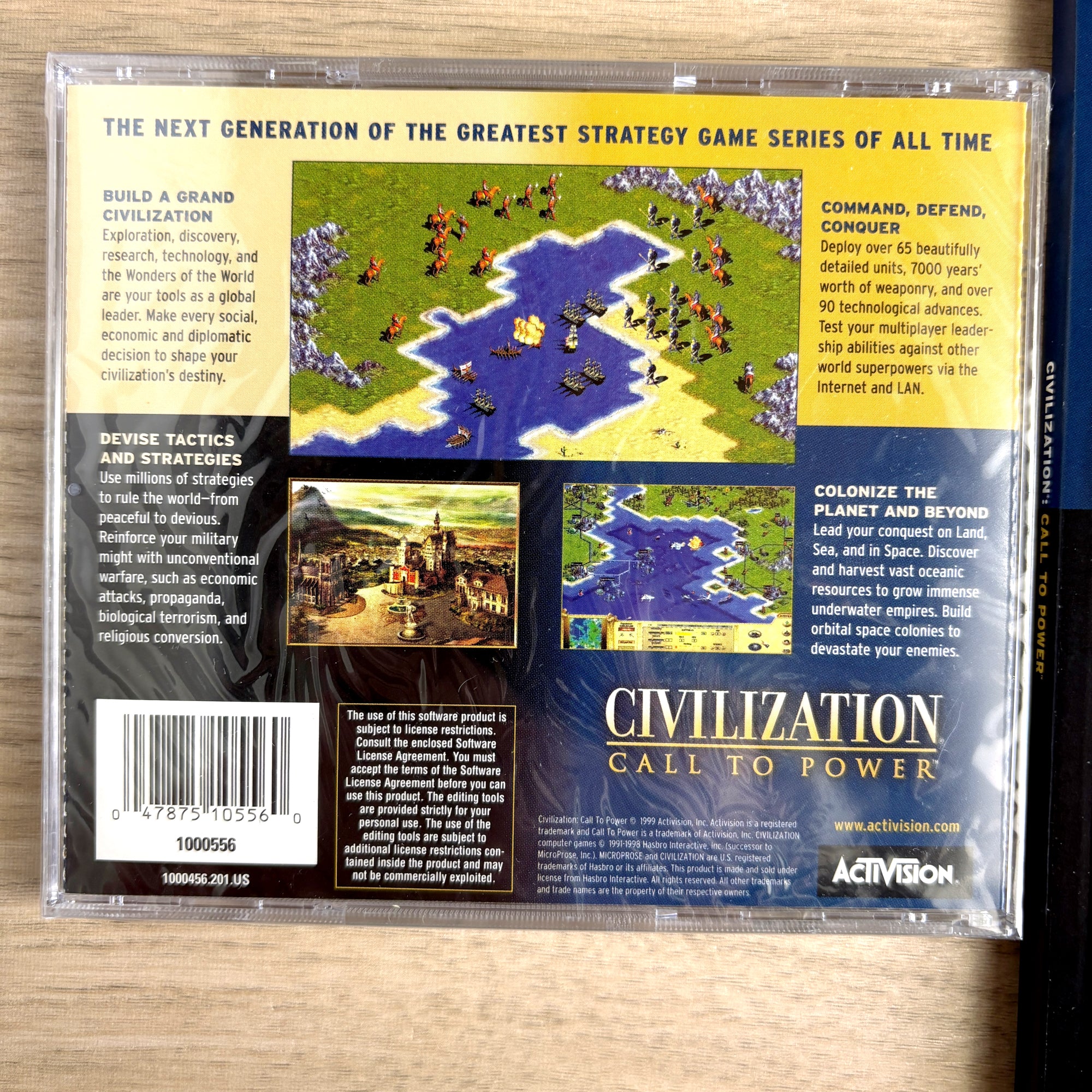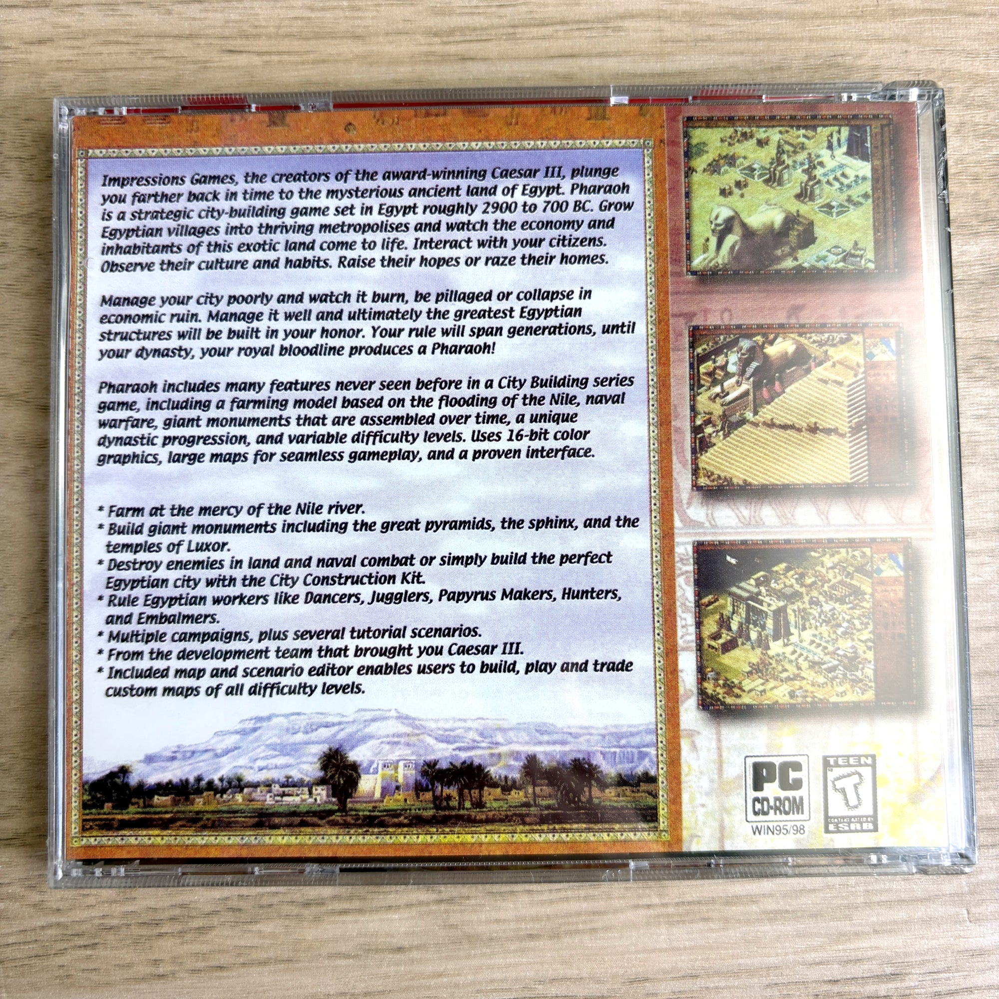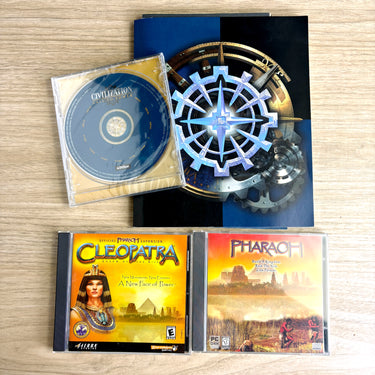 Two strategy games is sealed packages, plus one expansion in original jewel case. Titles include: Civilization Call to Power by ActiVision (1999 95/98/NT) includes instructions and map; Pharaoh - Build A Kingdom. Rule The Nile. Live Forever. (95/98) and Official Pharaoh expansion Cleopatra Queen of the Nile - New Monuments. New Enemies. A New Face of Power by Sierra Studios. Windows 95/98 install.