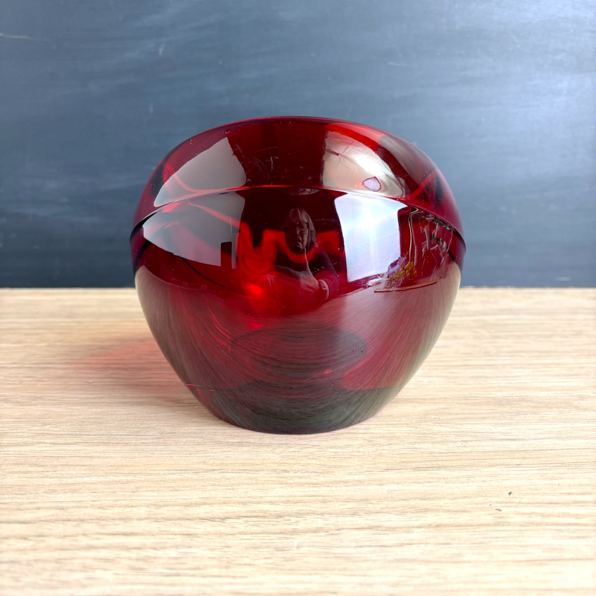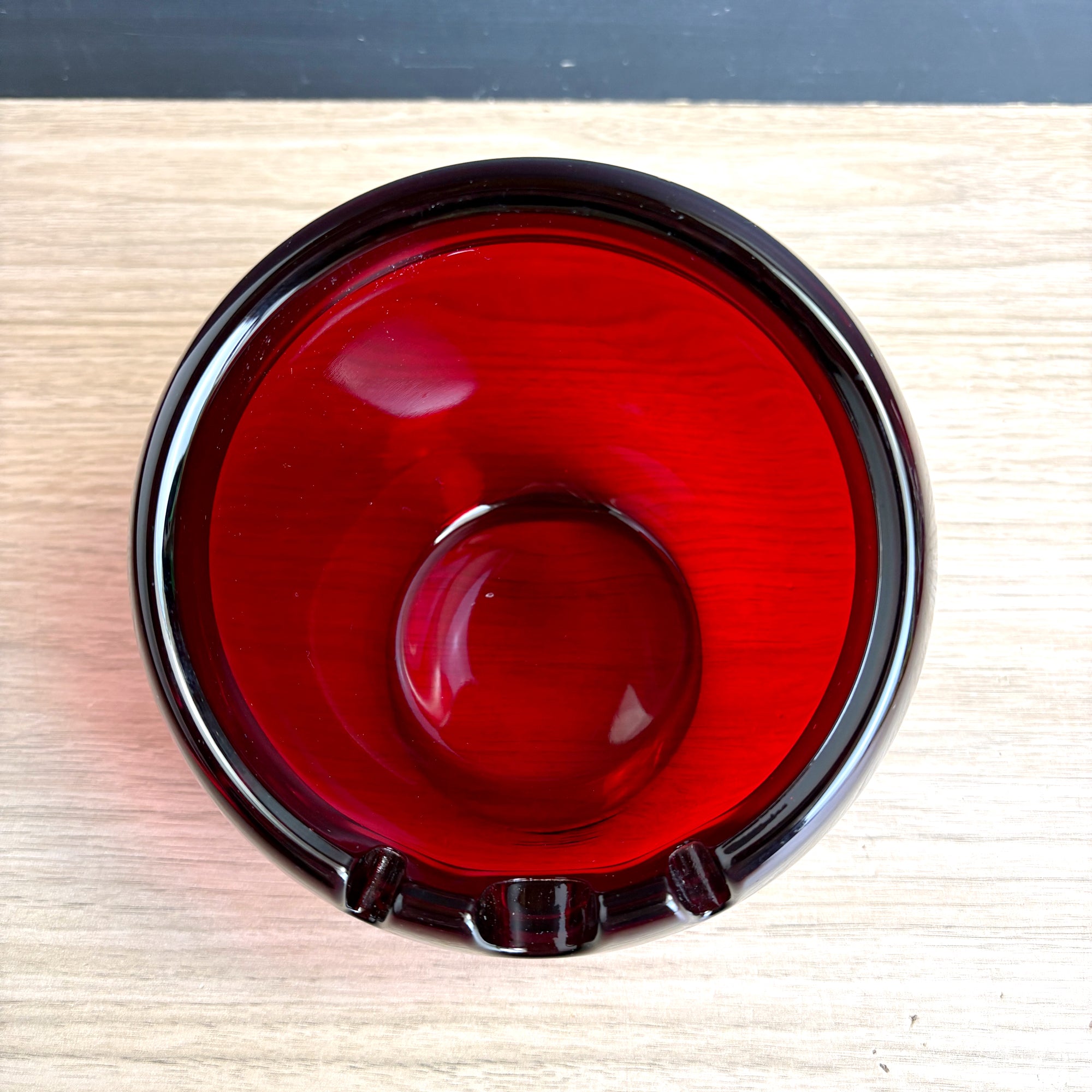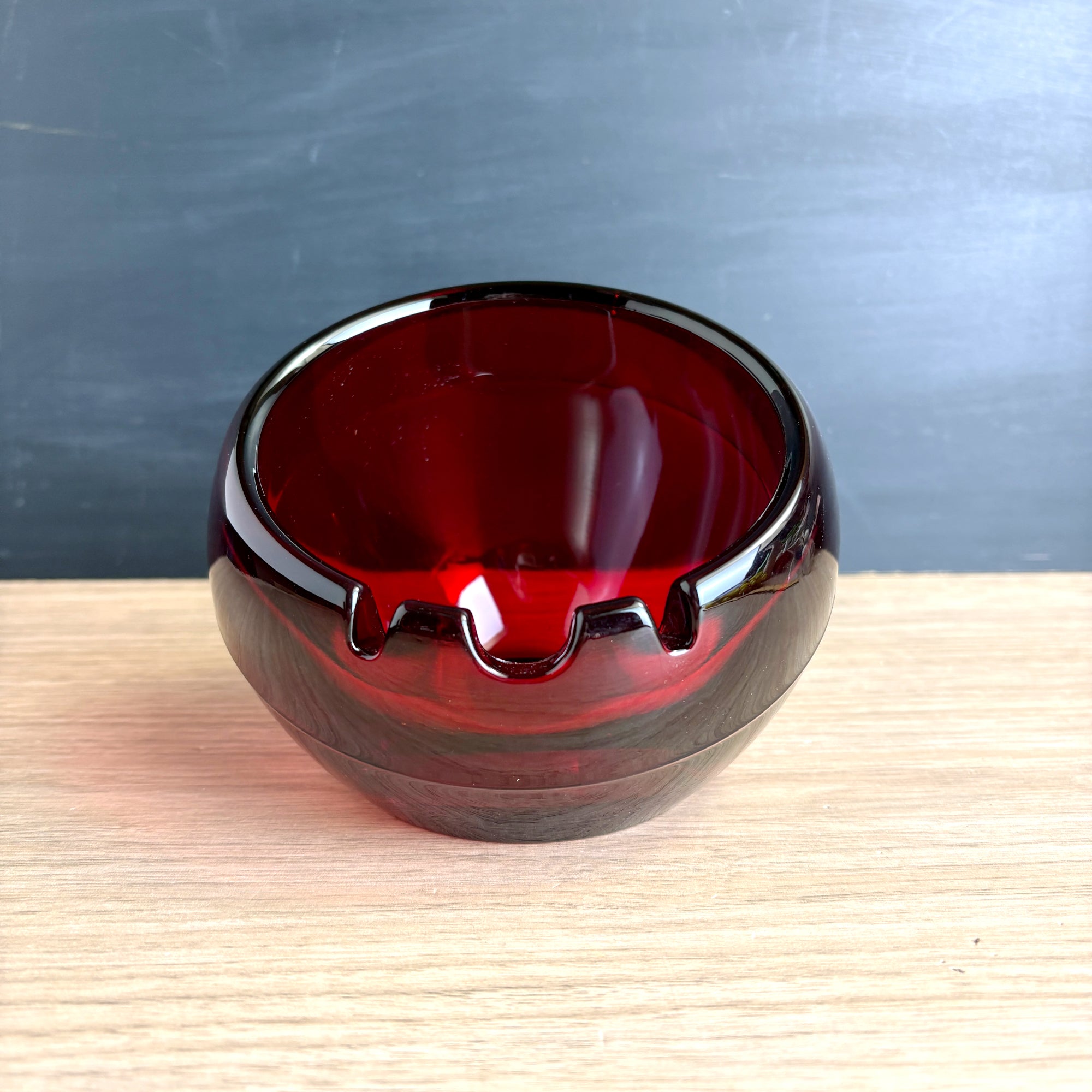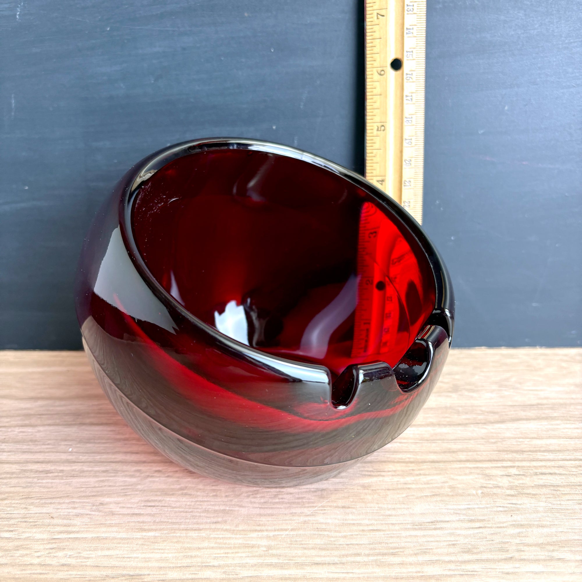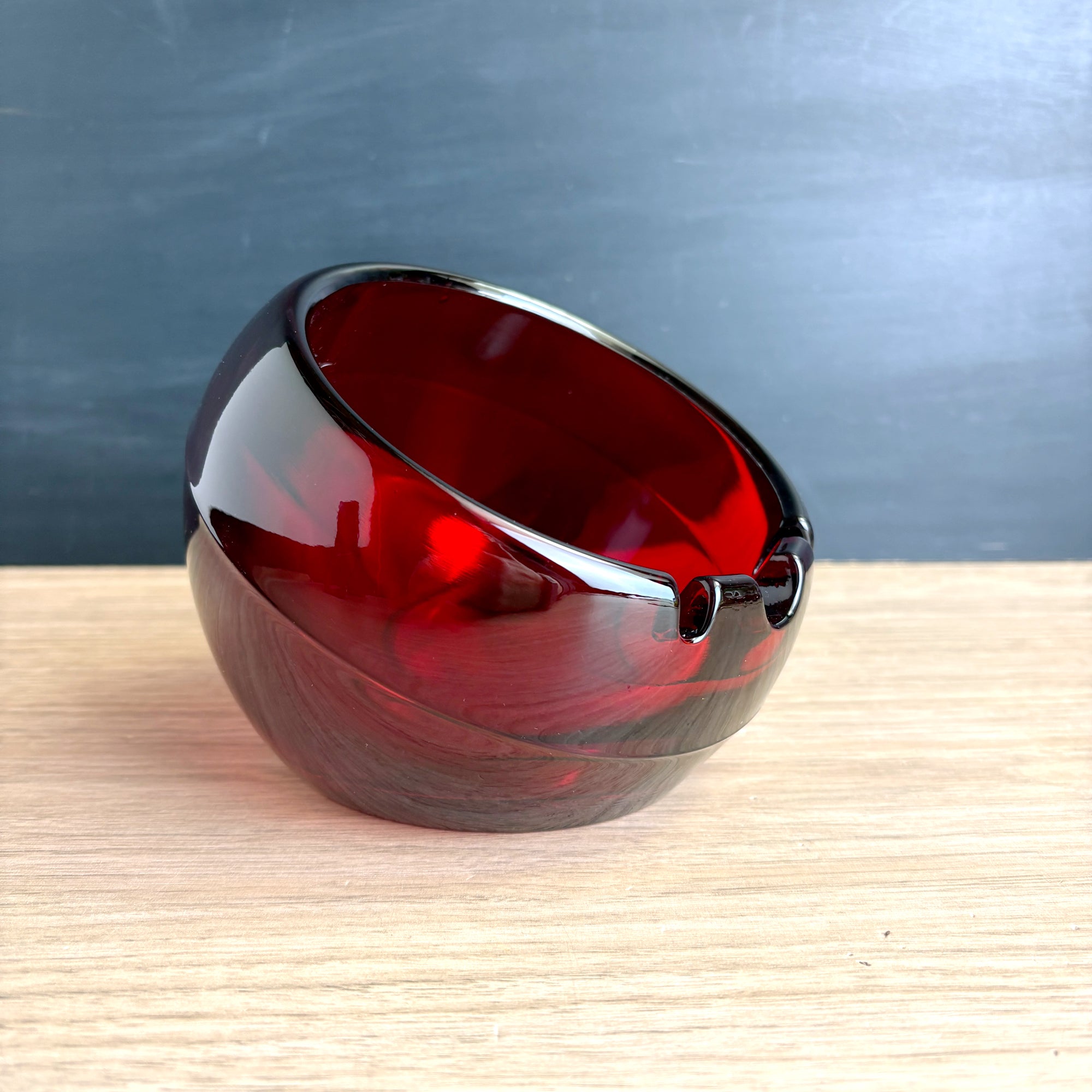 Viking ruby red 6" orb ashtray - 1960s vintage