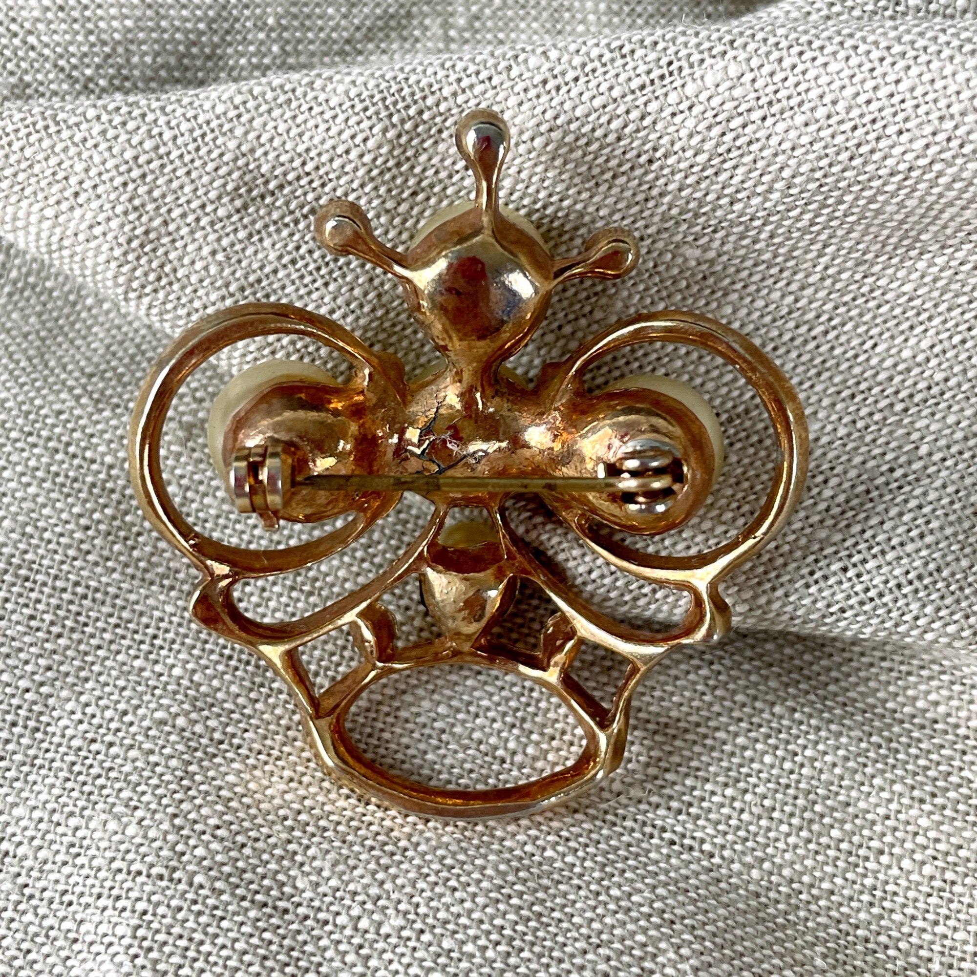 Atomic crown brooch with pearls and rhinestones - 1950s vintage
