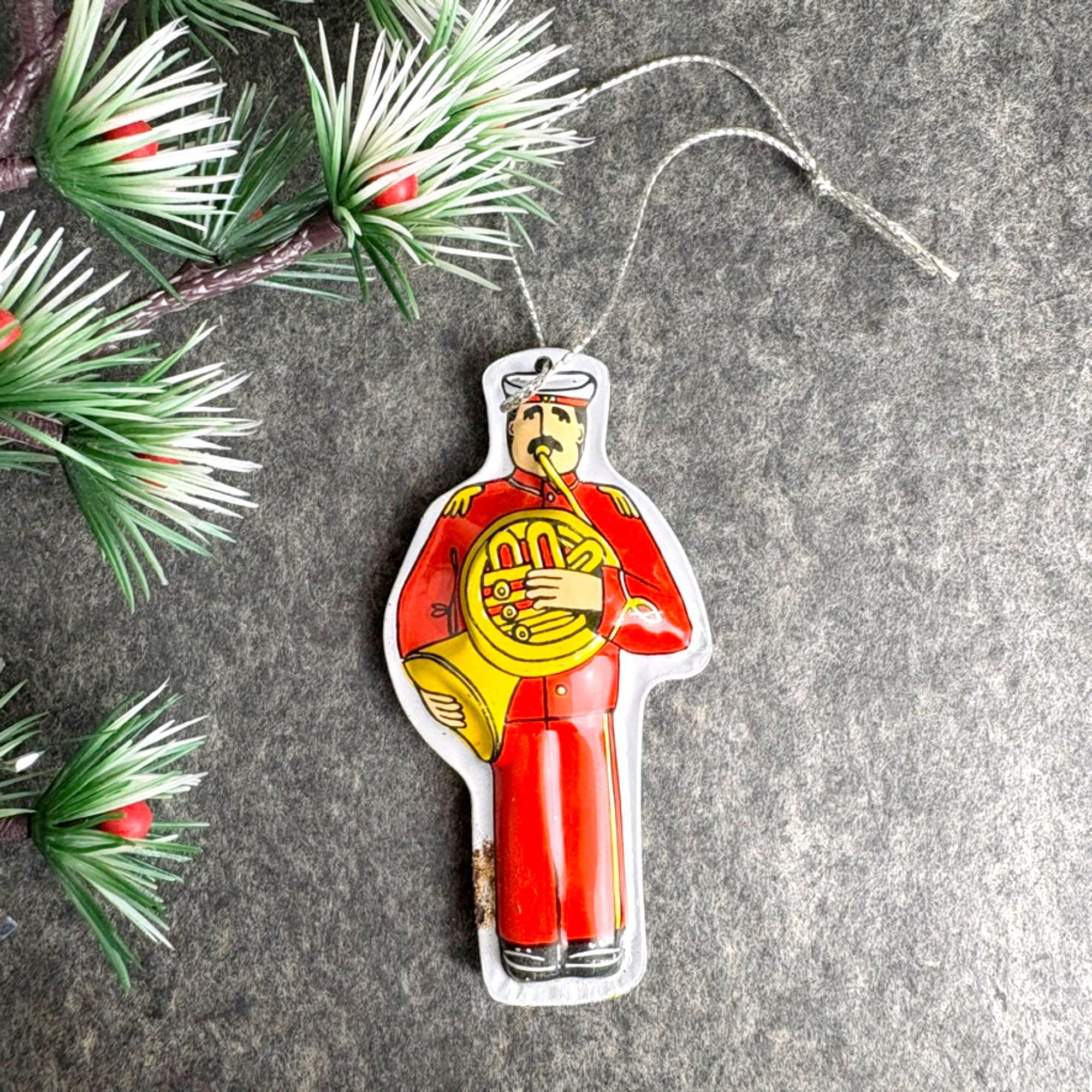Dansk tin french horn player ornament Swedish Navy Band litho Denmark - vintage