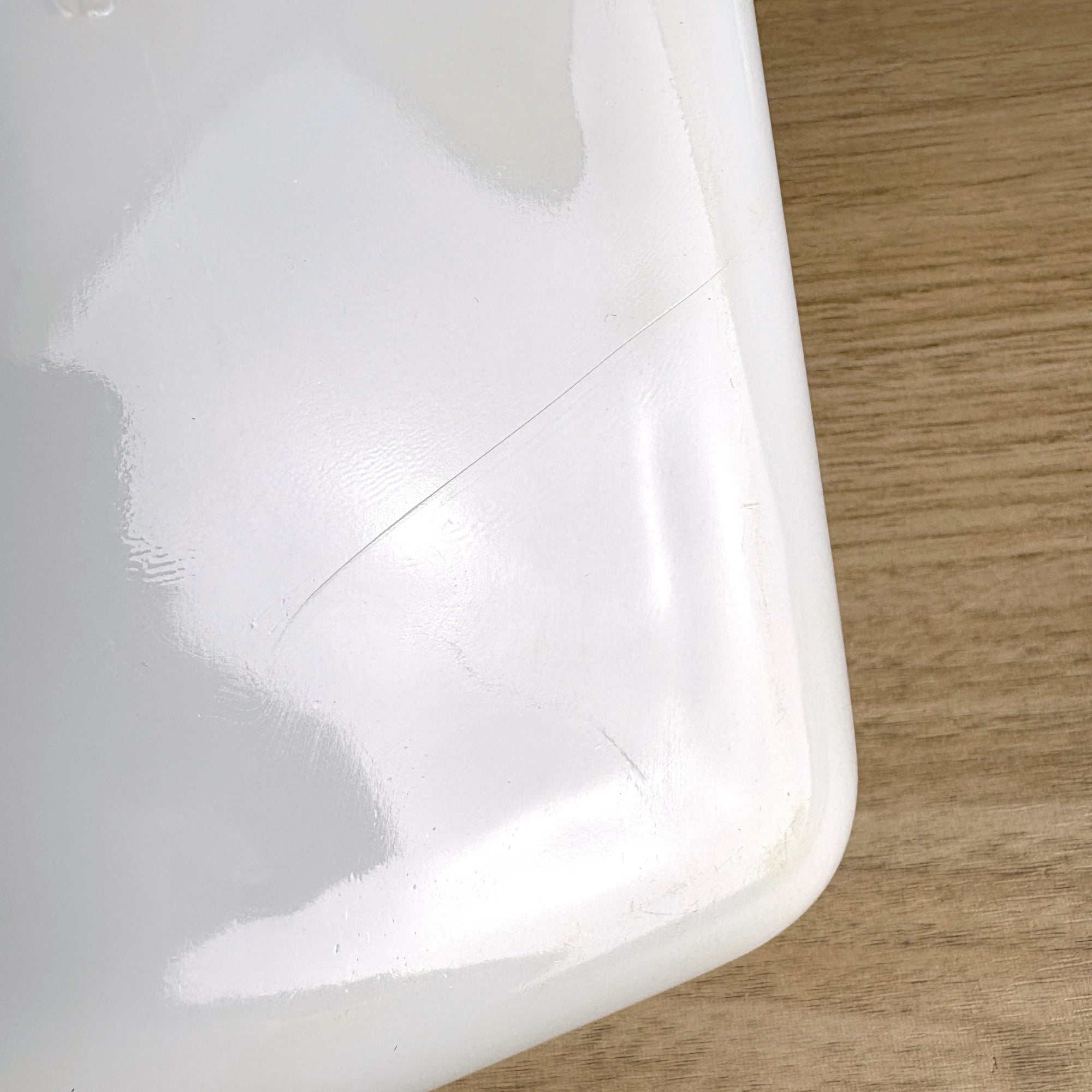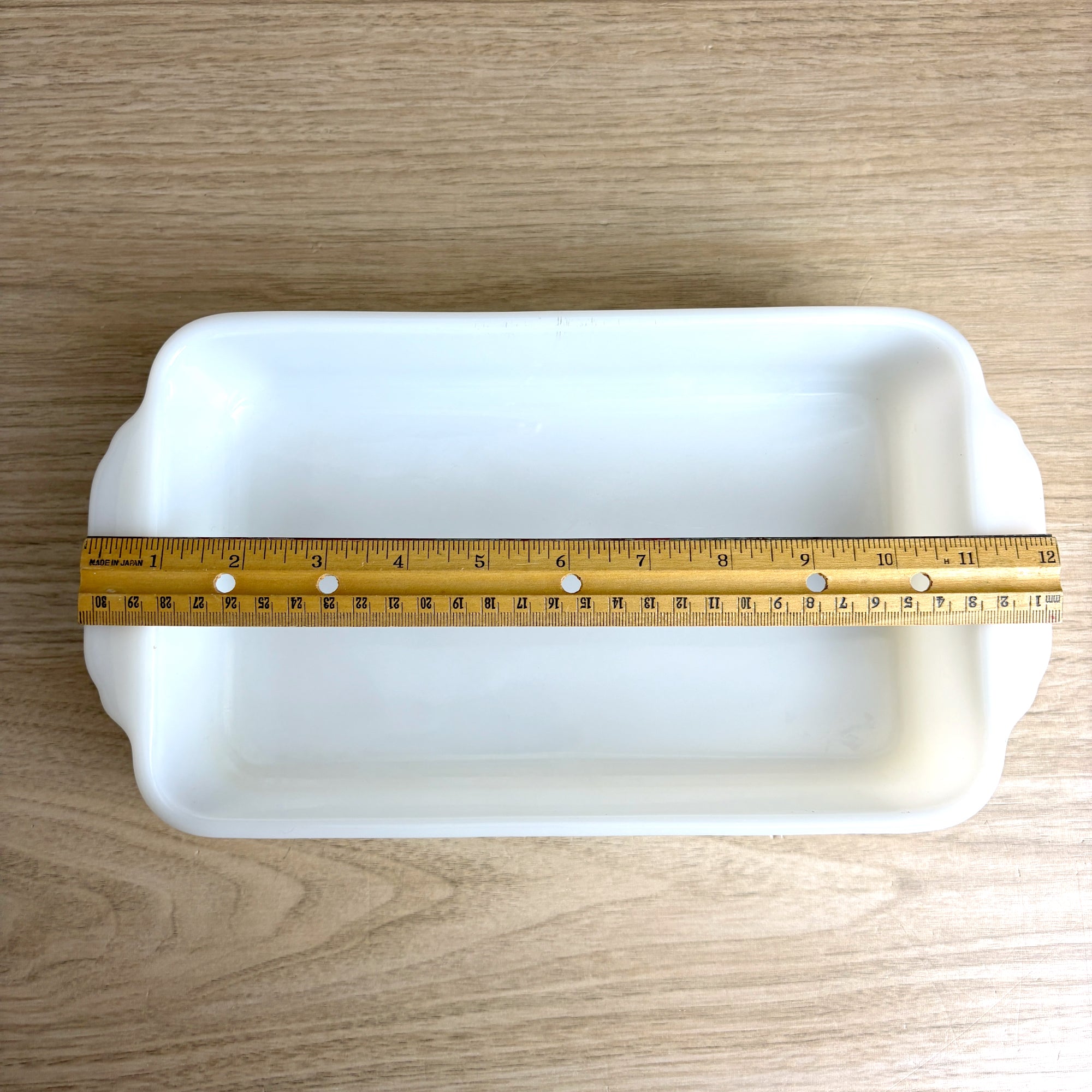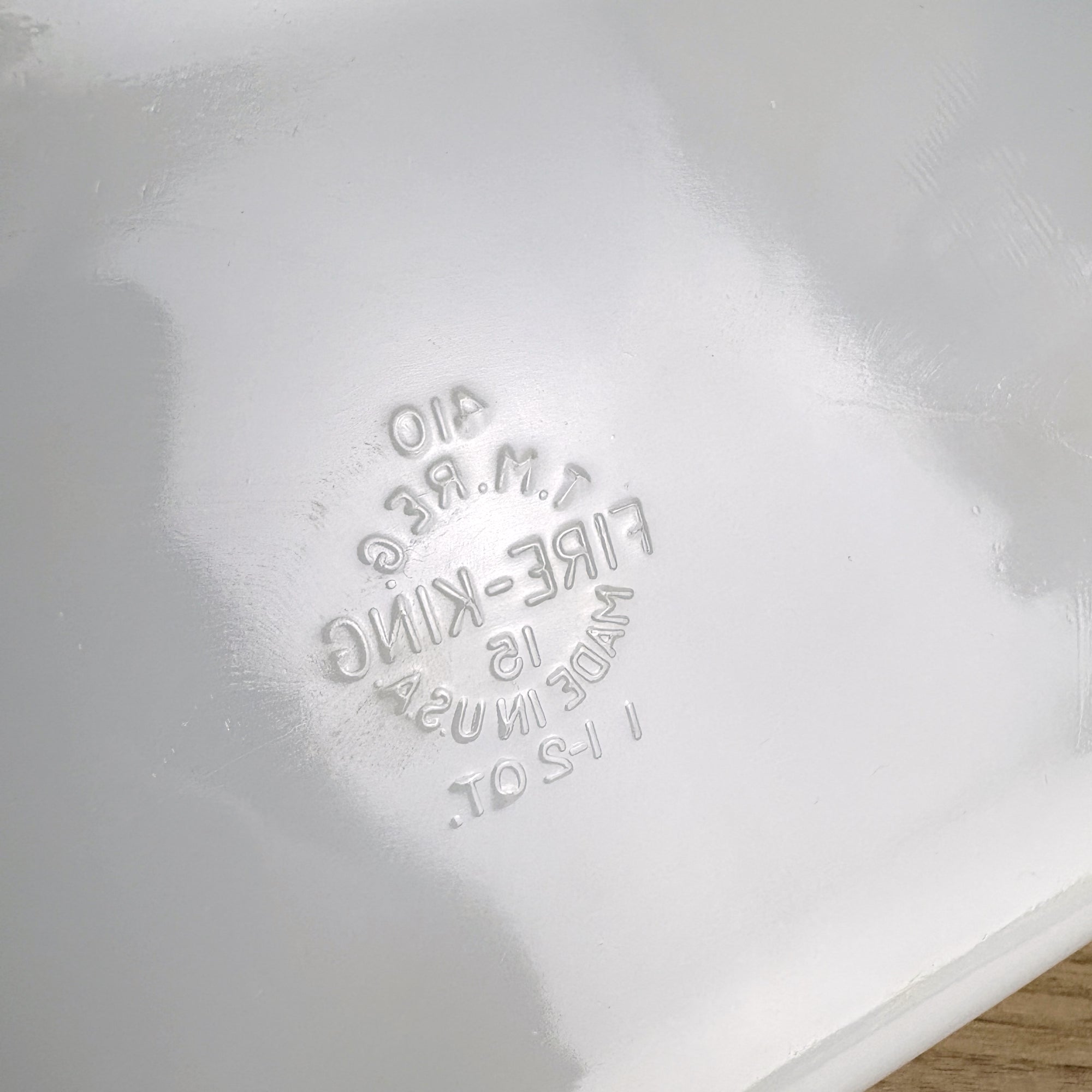 Vintage Fire King milk glass baking dish still has seen little, if any use. Rectangular casserole dish has a 1.5-quart capacity. Marked with the Fire King logo on the bottom. Perfect for baking, serving, or display. A must-have for fans of mid-century modern kitchenware. Made in the USA.