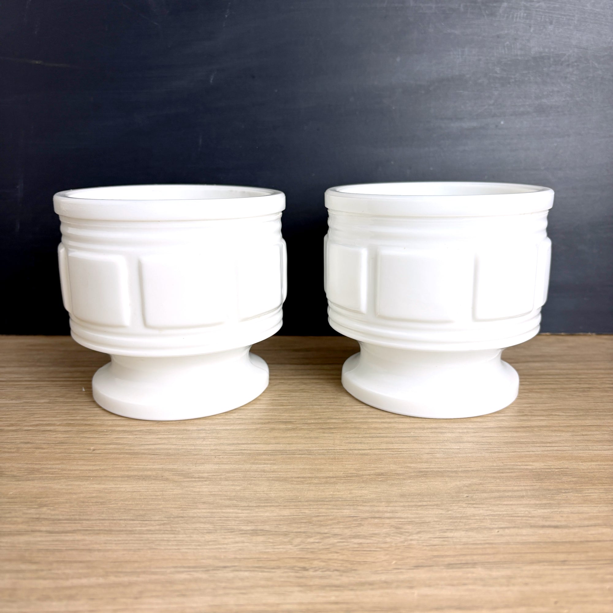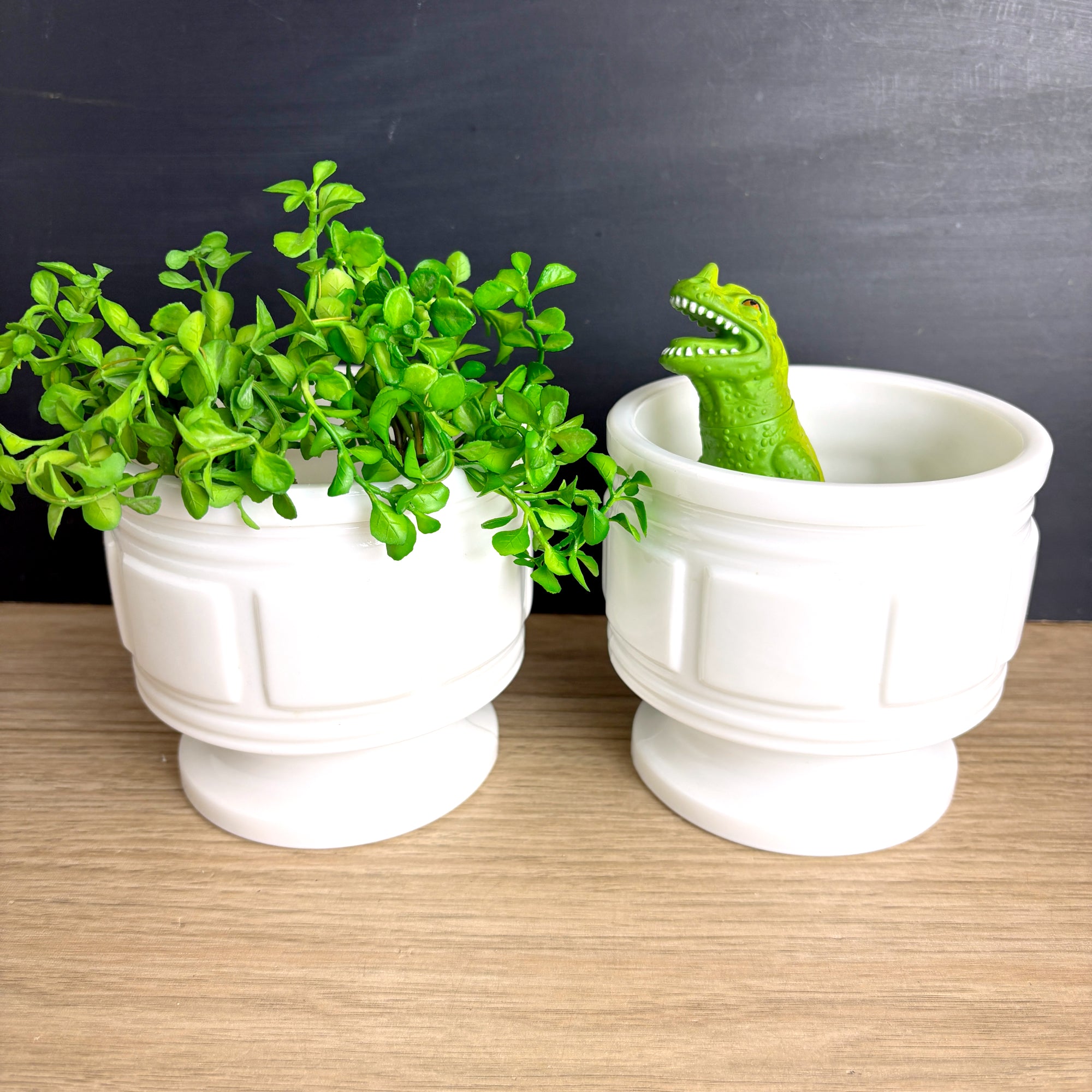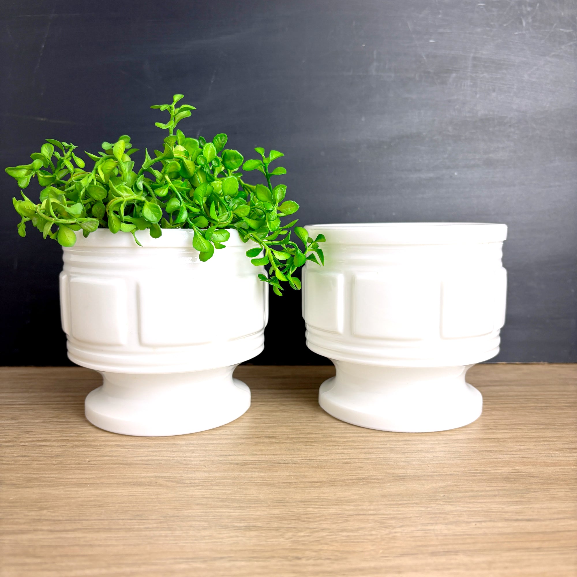 Vintage 1940s Randall milk glass planters – Set of 2 – Block pattern – white glass flower pots