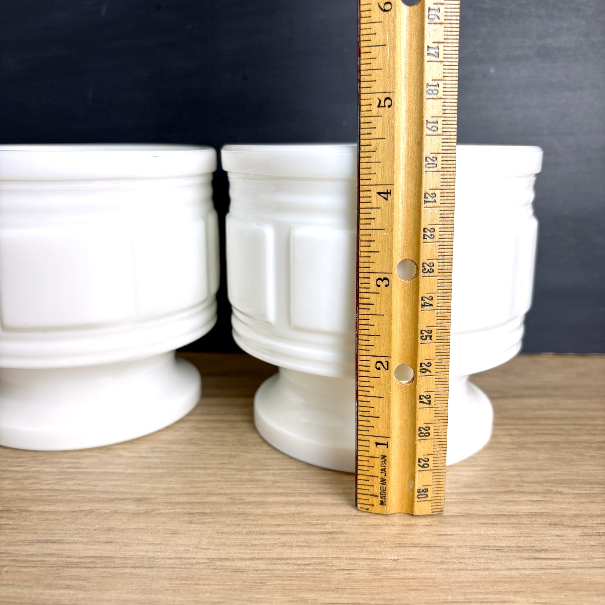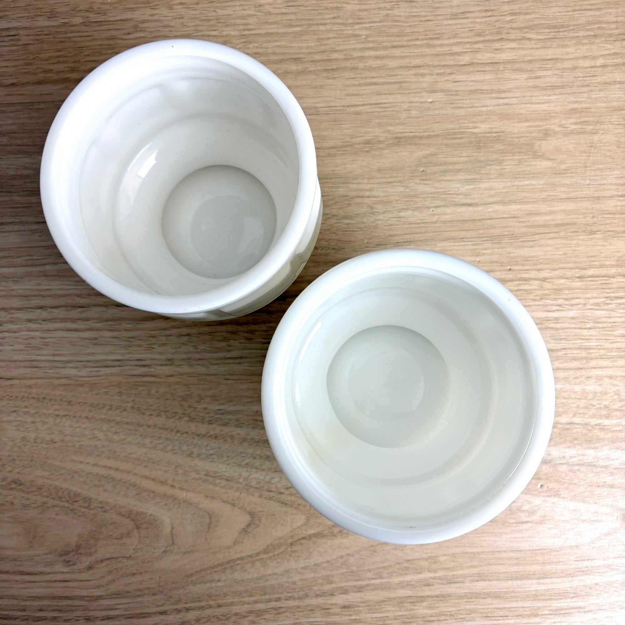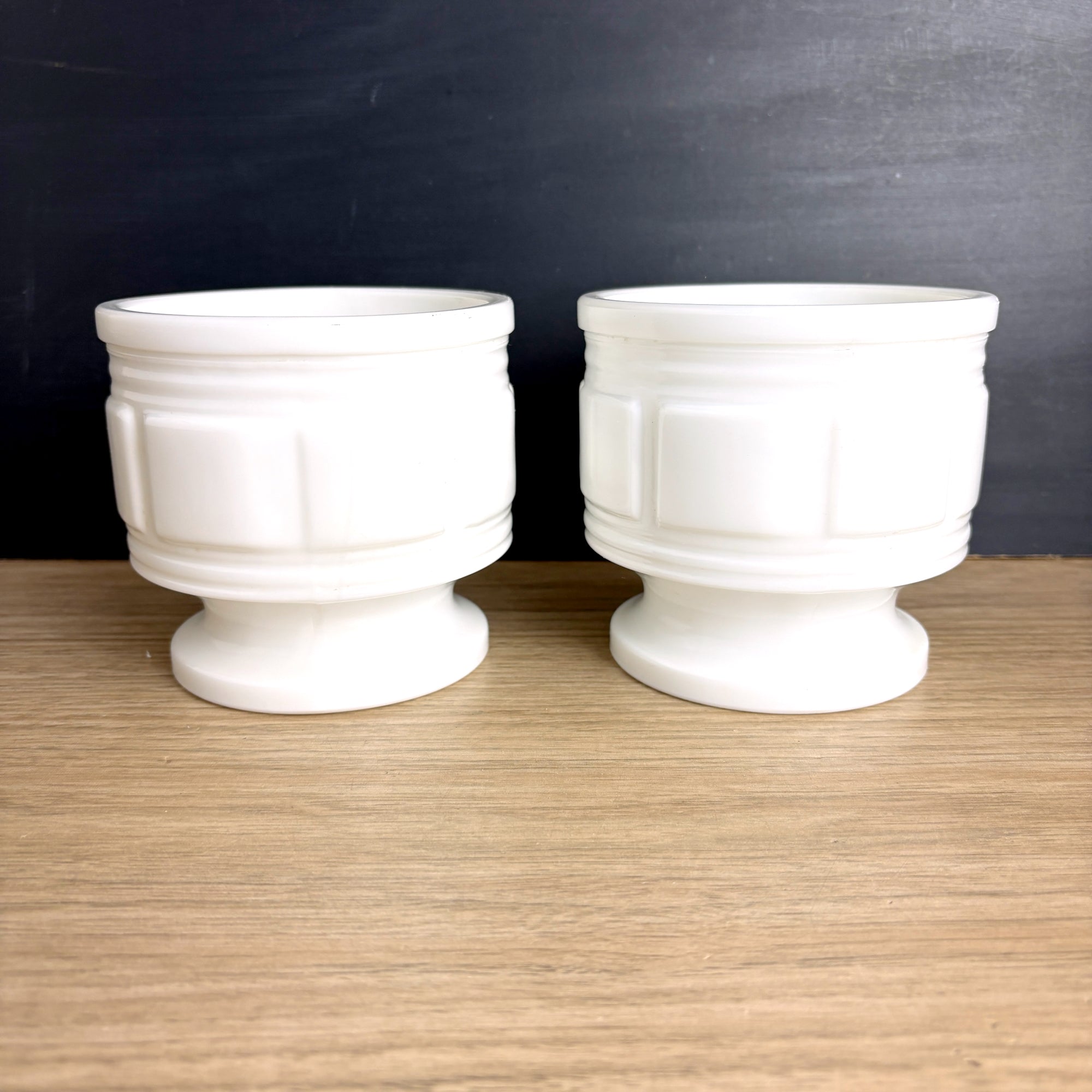 Vintage 1940s Randall milk glass planters – Set of 2 – Block pattern – white glass flower pots