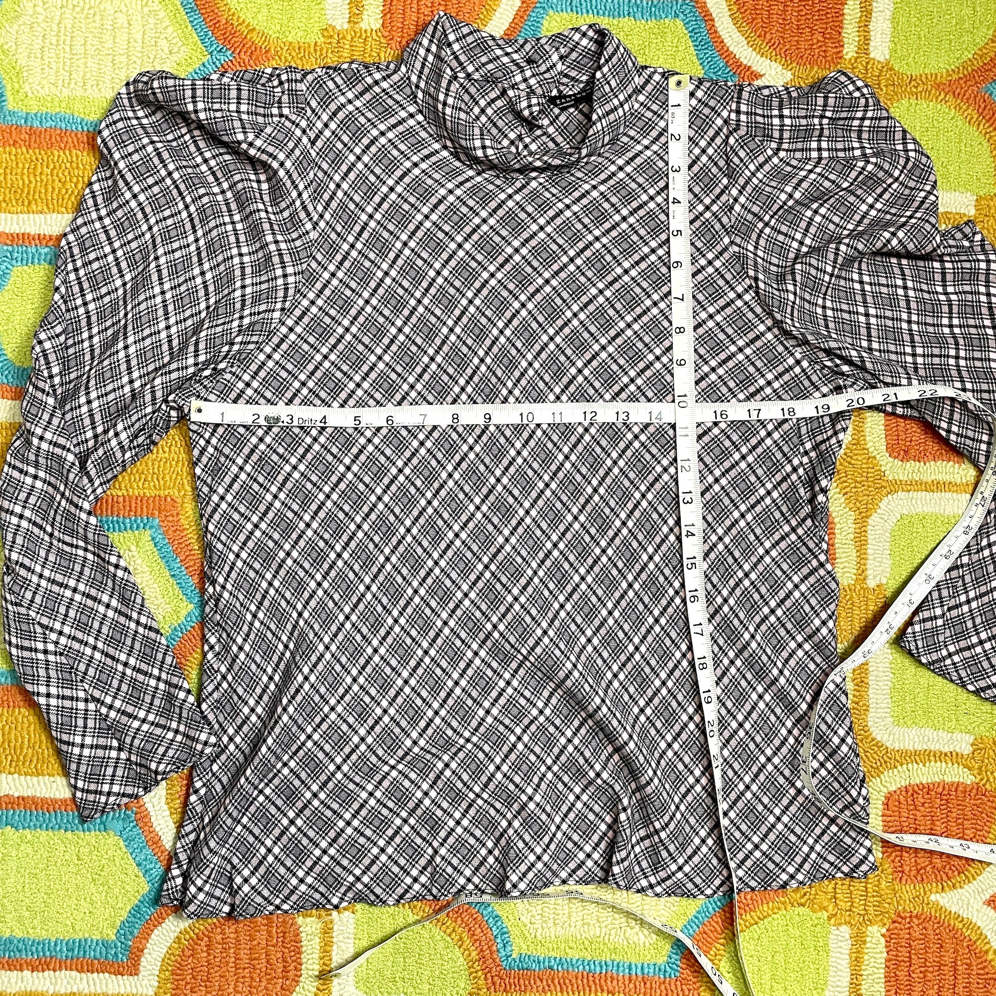 Zara Woman plaid blouse with high collar - size XL